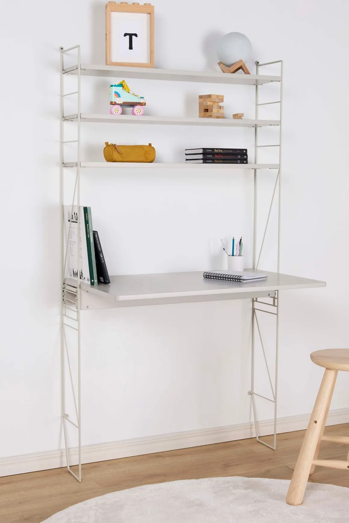 | Øvrige mål | Reolens mål: D20 x B90 x H170 cm Skrivebordets mål: D55 x B90 x H75 cm Maks. belastning pr. hylde: 5 kg Maks. belastning på skrivebordet: 25 kg |
