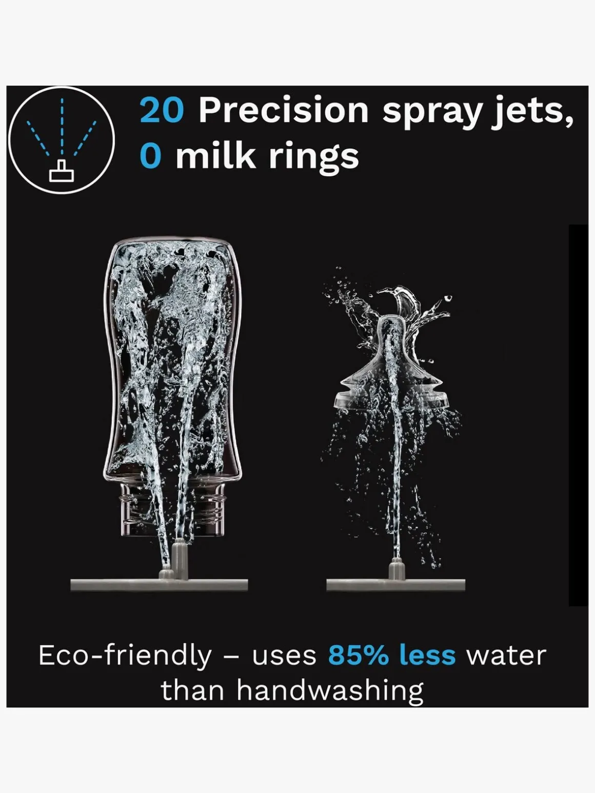 – Passer til alle slags flasker og de fleste pumpedele og tudekopper (ekskl. modermælksflasker, bærbare pumpedele og tudekopper fra Nanobebe).