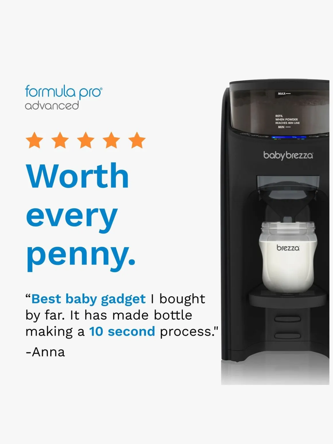 – OBS: Nogle typer pulver kan klumpe mere end andre. Ryst flasken i et par sekunder for at opløse eventuelle klumper. Alle fabrikater er grundigt testet i laboratoriet for at garantere, at den korrekte mængde pulver doseres ved den korrekte indstilling af målehjulet. Sørg for at vedligeholde maskinen i henhold til brugsanvisningen. Manglende vedligeholdelse kan bidrage til, at maskinen laver en mere klumpet blanding.