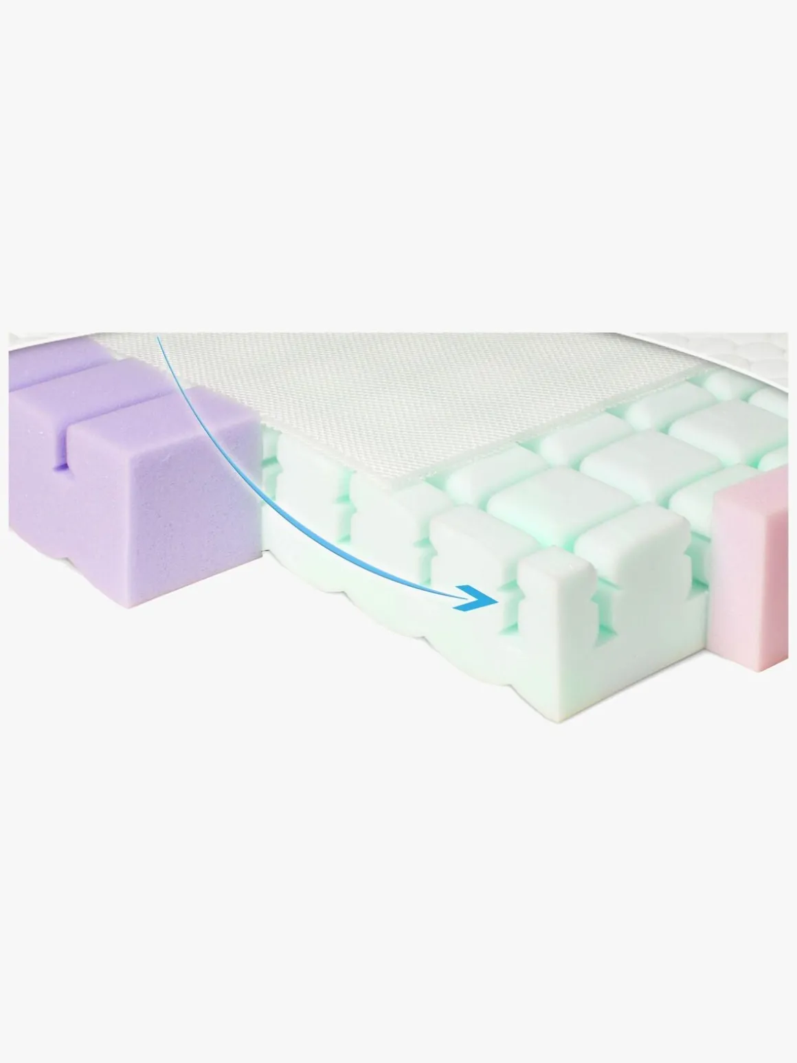 Derudover bidrager madrassens masserende struktur og høje punktelasticitet også til ekstra komfort, mens de langsgående og laterale ventilationskanaler holder madrassen luftig og frisk. For at beskytte dit barn mod skader i løbet af natten er der forstærkede kanter, som reducerer risikoen for, at dit barn ruller ud over madrassens kant.