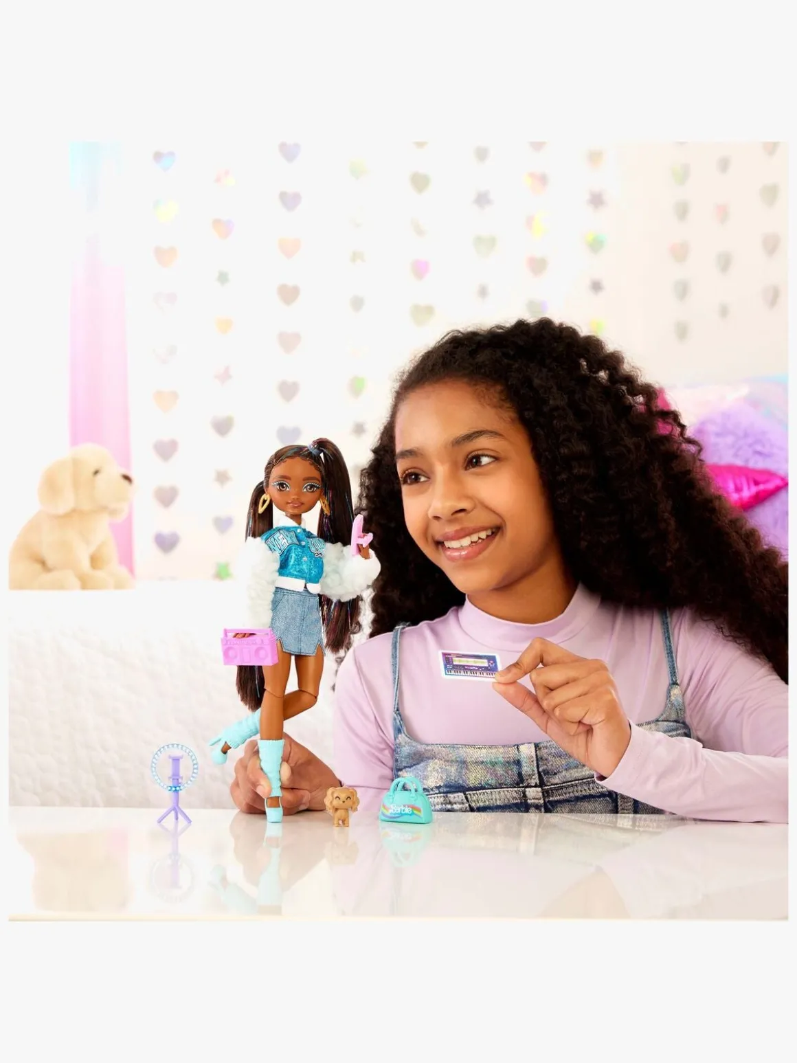 – Indeholder: 1 barbiedukke, 1 hundehvalp, 1 håndtaske, 1 mobiltelefon, 1 mobiltelefoncover, 1 Boombox, 1 tablet-PC, 1 selfielampe.