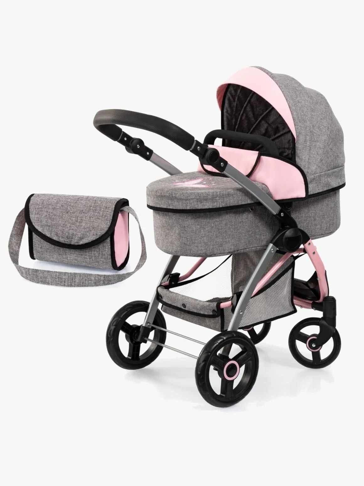 – Indeholder: 1 dukkevogn, 1 pusletaske.