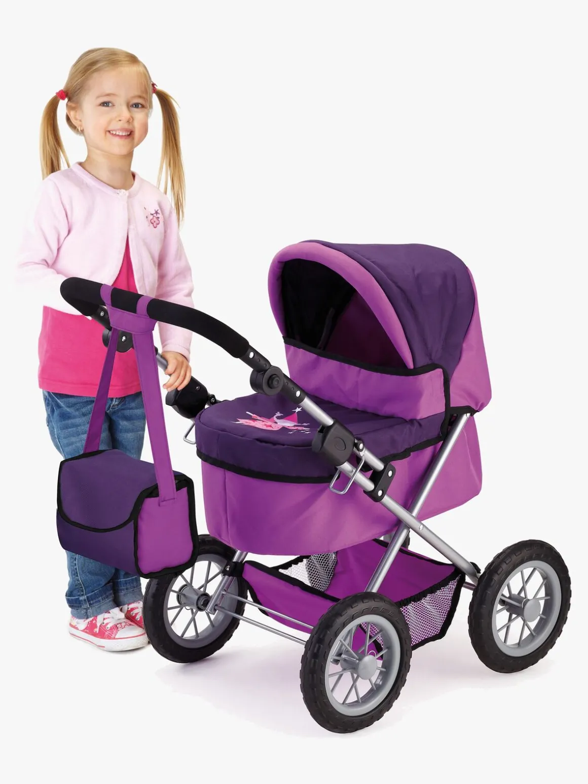 – Indeholder: 1 dukkevogn, 1 pusletaske.