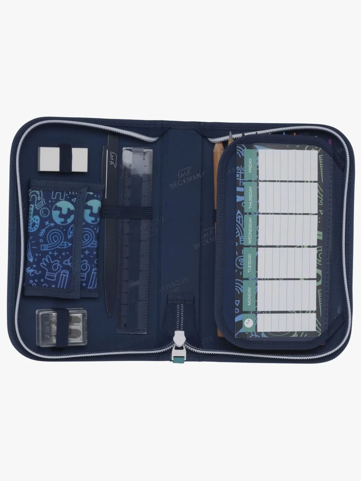 – Indeholder: 2 jumboblyanter, 7 jumbofarveblyanter, 7 farveblyanter, 1 viskelæder, 1 lineal, 1 blyantspidser, 1 tegnebog.