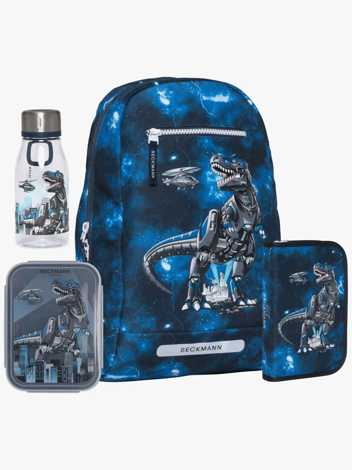 – Sættet indeholder også et penalhus, en drikkedunk og en madkasse.