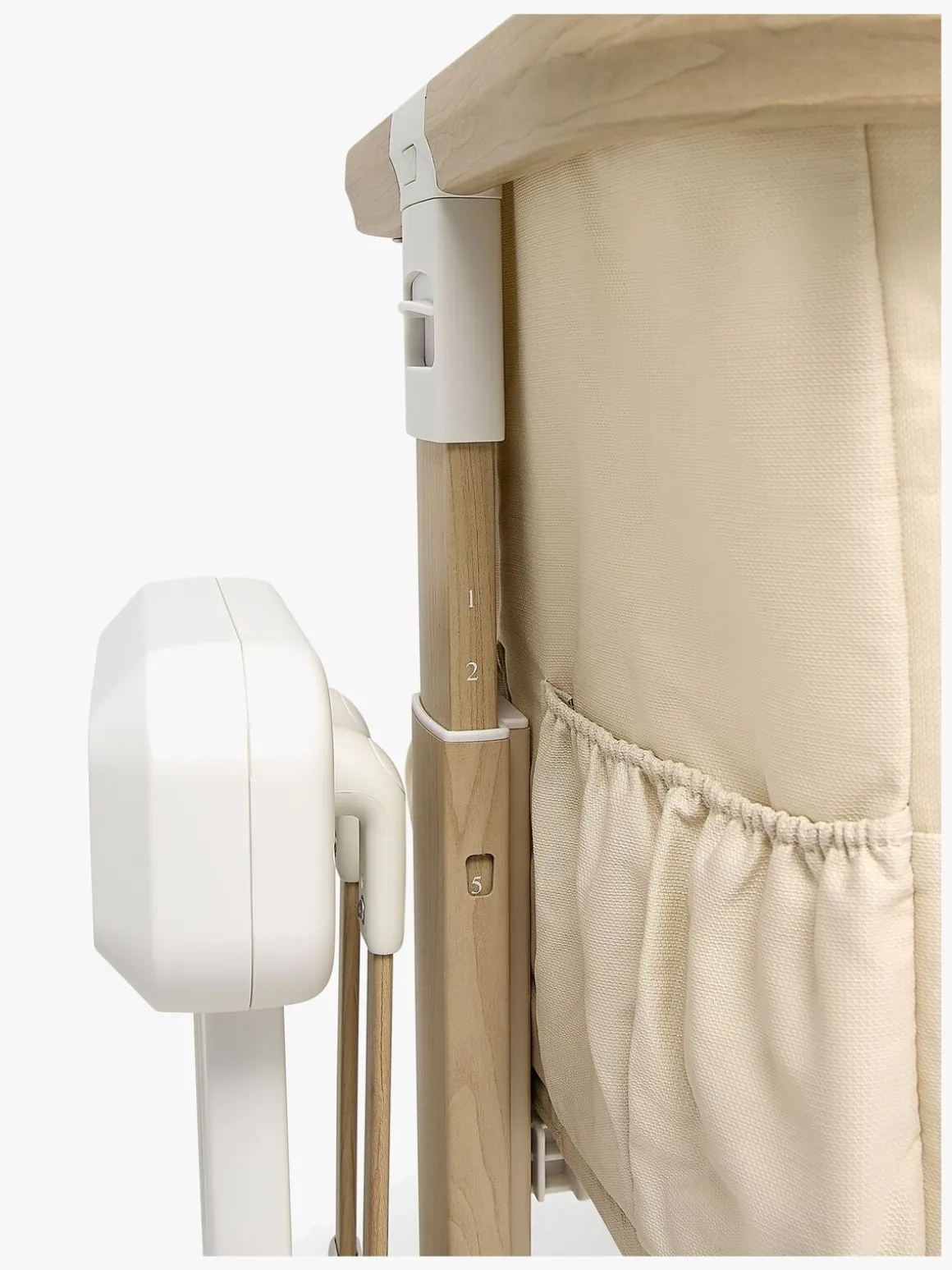 Den indbyggede Auto Motion-teknologi gør, at sengen kan vugge automatisk i bløde, rytmiske bevægelser uden at du behøver gøre det manuelt. Funktionen efterligner følelsen af at blive vugget i armene og hjælper dit barn med at falde trygt og roligt i søvn.