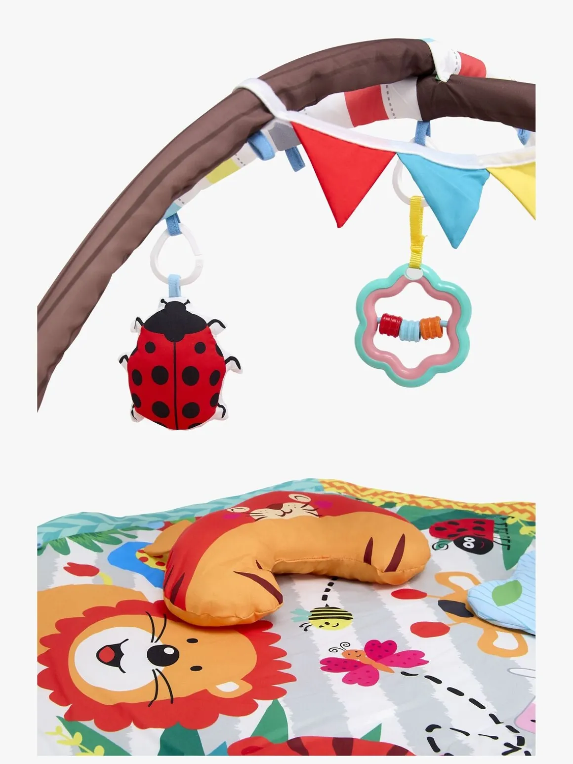 – Indeholder 3 hængende stykker legetøj.