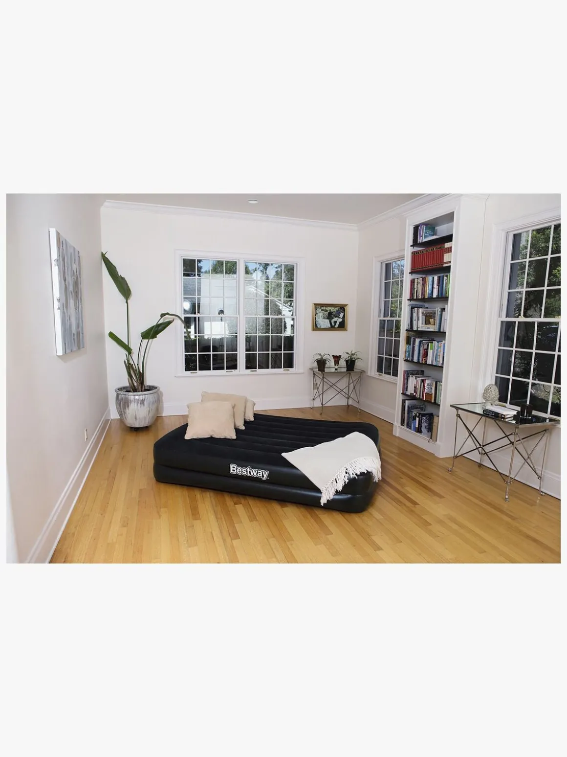 Madrassen blæses op på 4 minutter med den elektroniske pumpe og fungerer perfekt til indendørs brug. En praktisk transport- og opbevaringstaske medfølger.