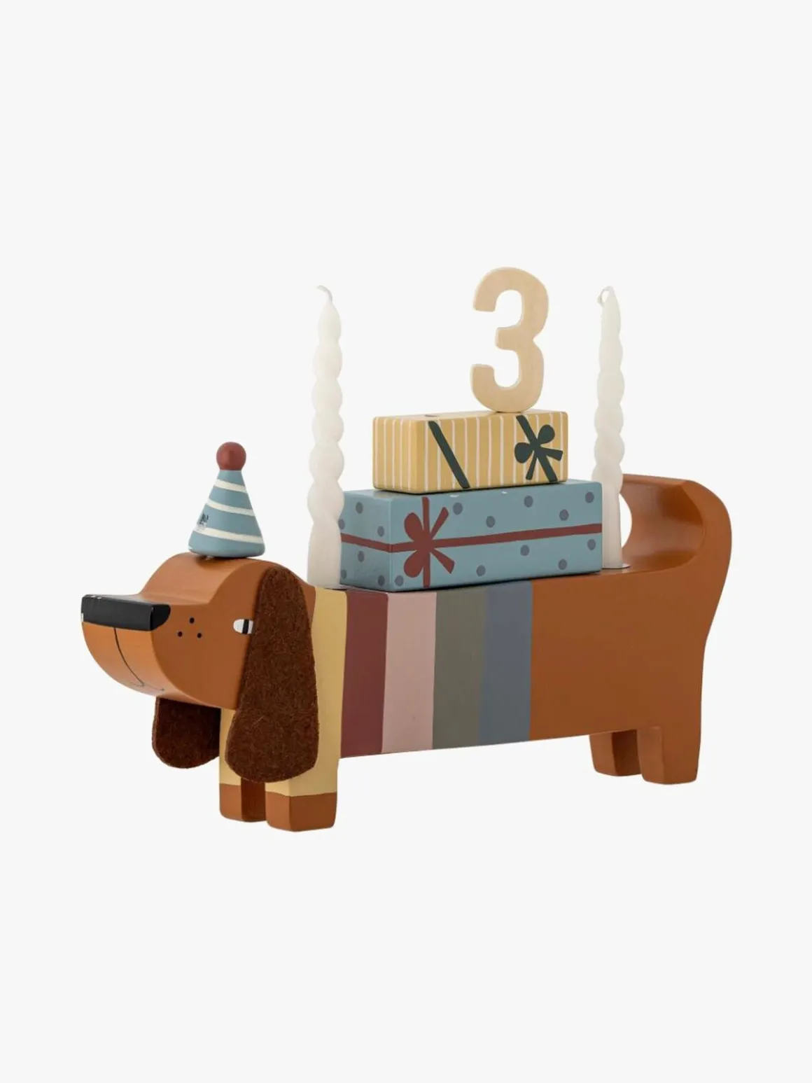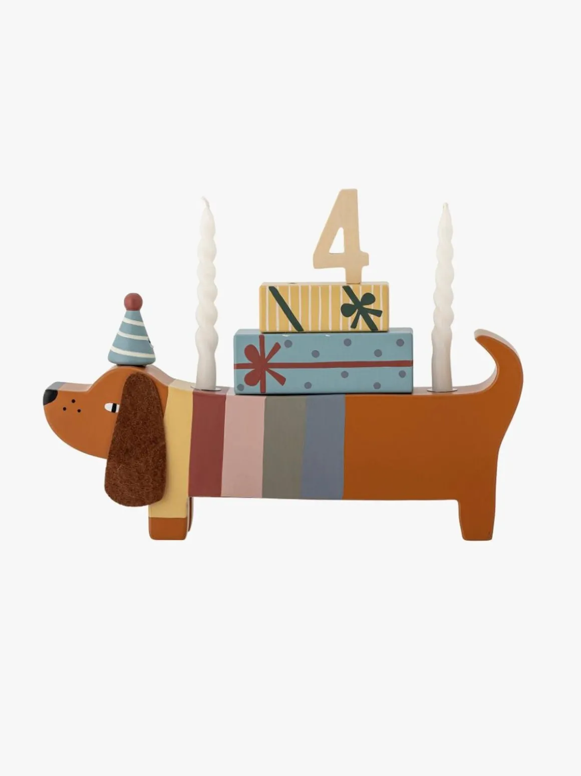 – Fødselsdagsdekorationen passer til to tal og to lys.
