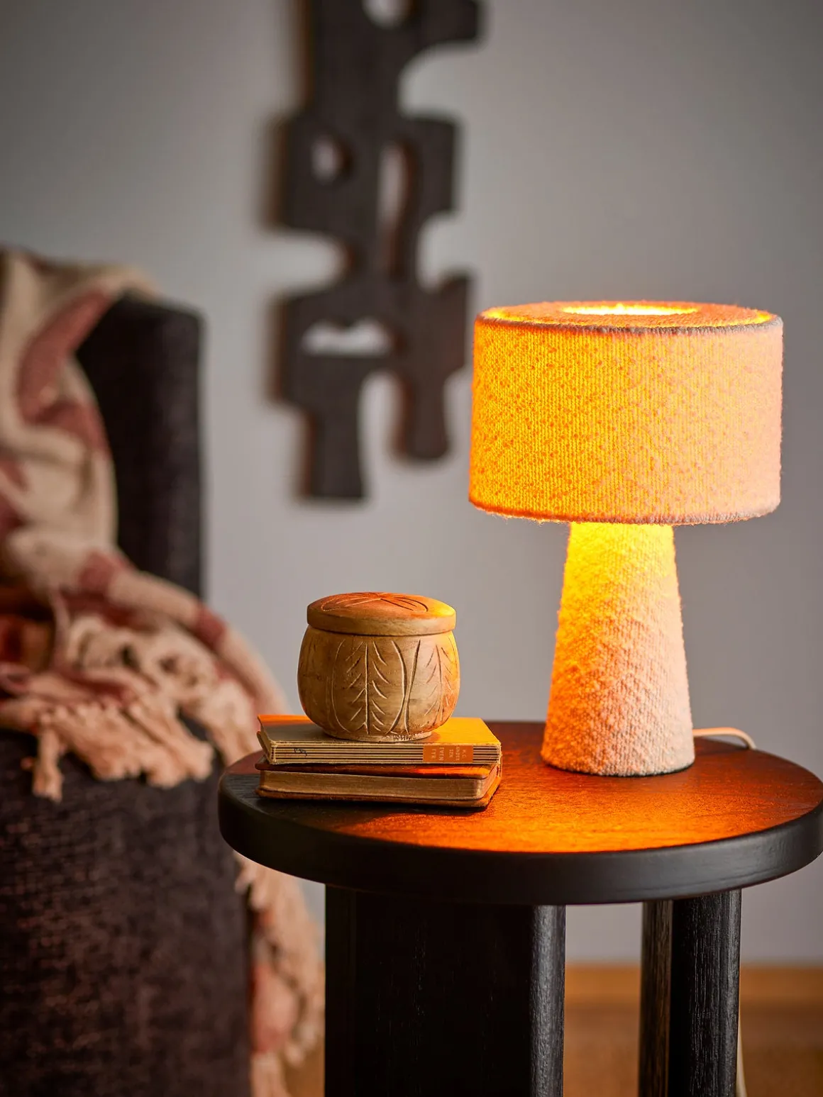 – Hyggeligt materiale i bouclé.
