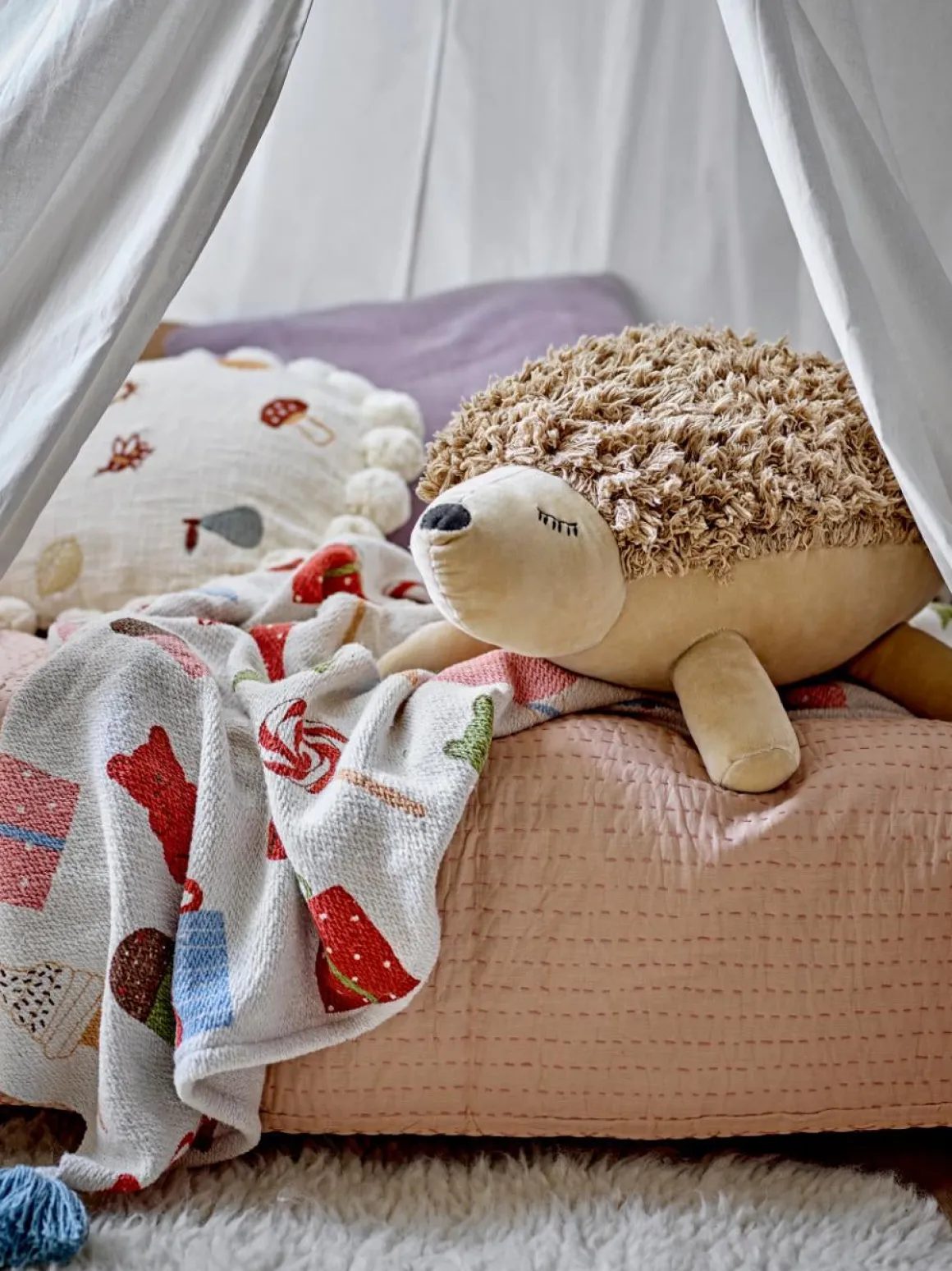 – Kan både bruges som legetæppe og babytæppe.