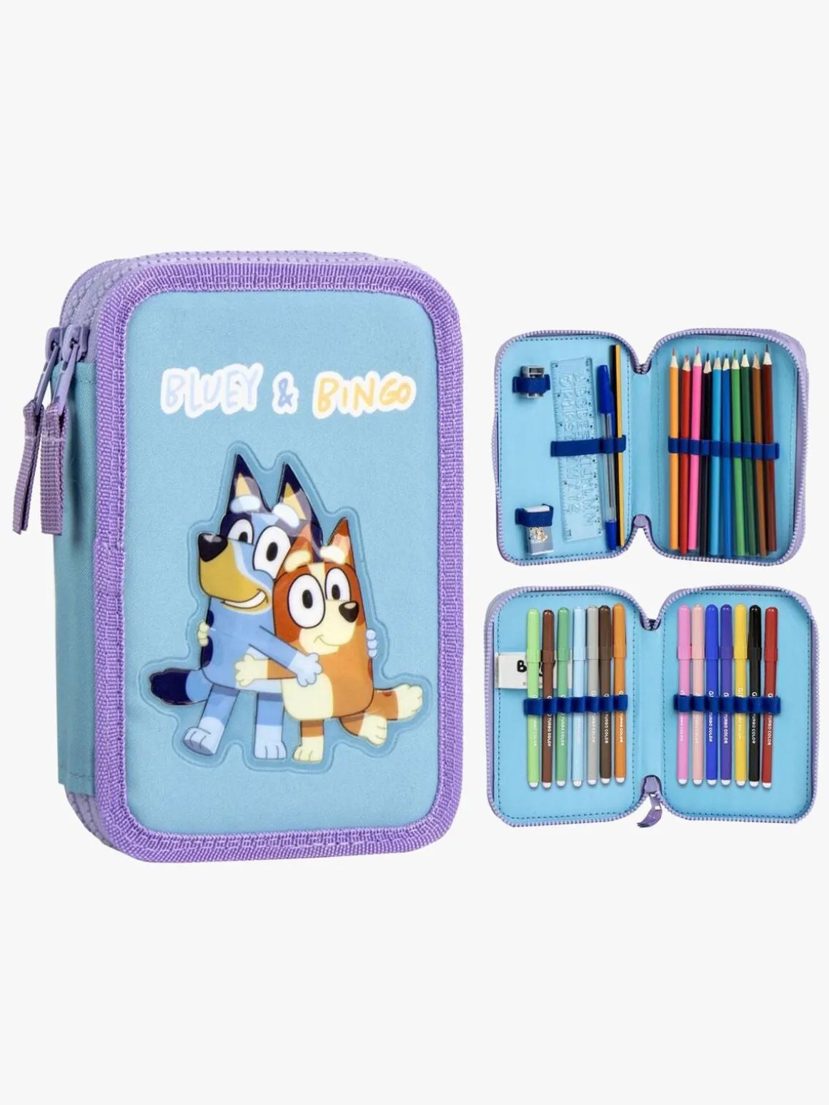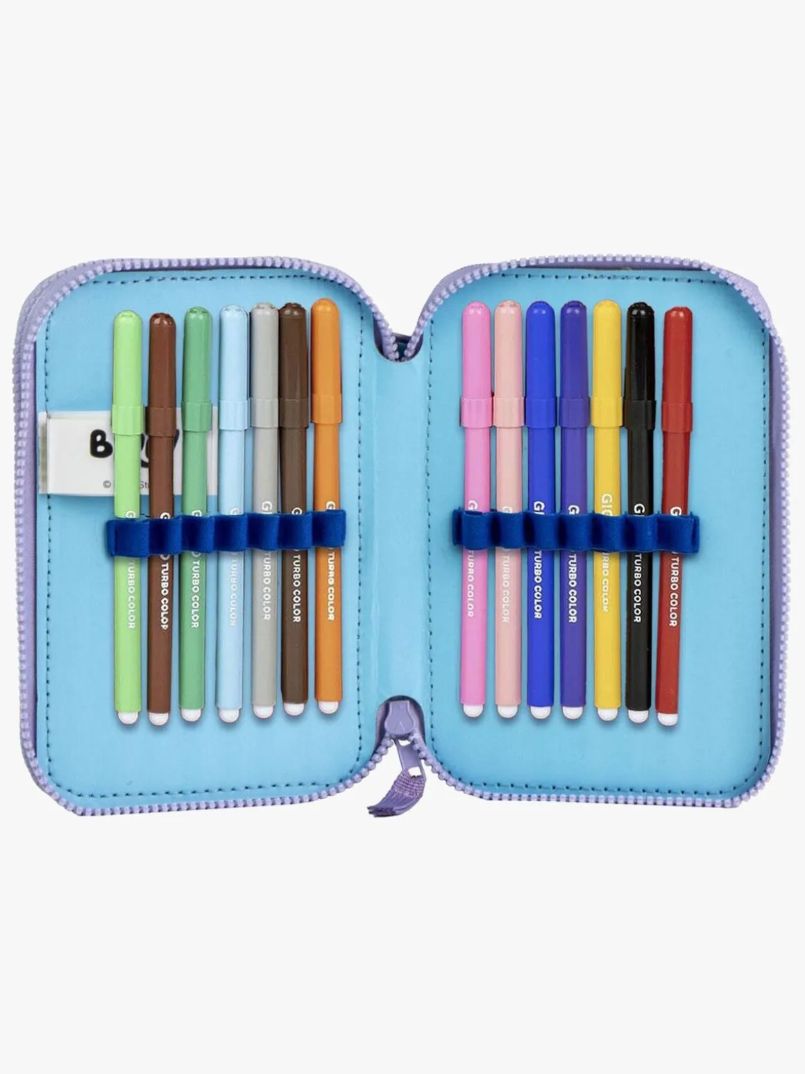 – Indeholder: 1 penalhus, 10 farveblyanter, 14 filttusser, 1 viskelæder, 1 blyantspidser, 1 kuglepen, 1 blyant, 1 lineal.