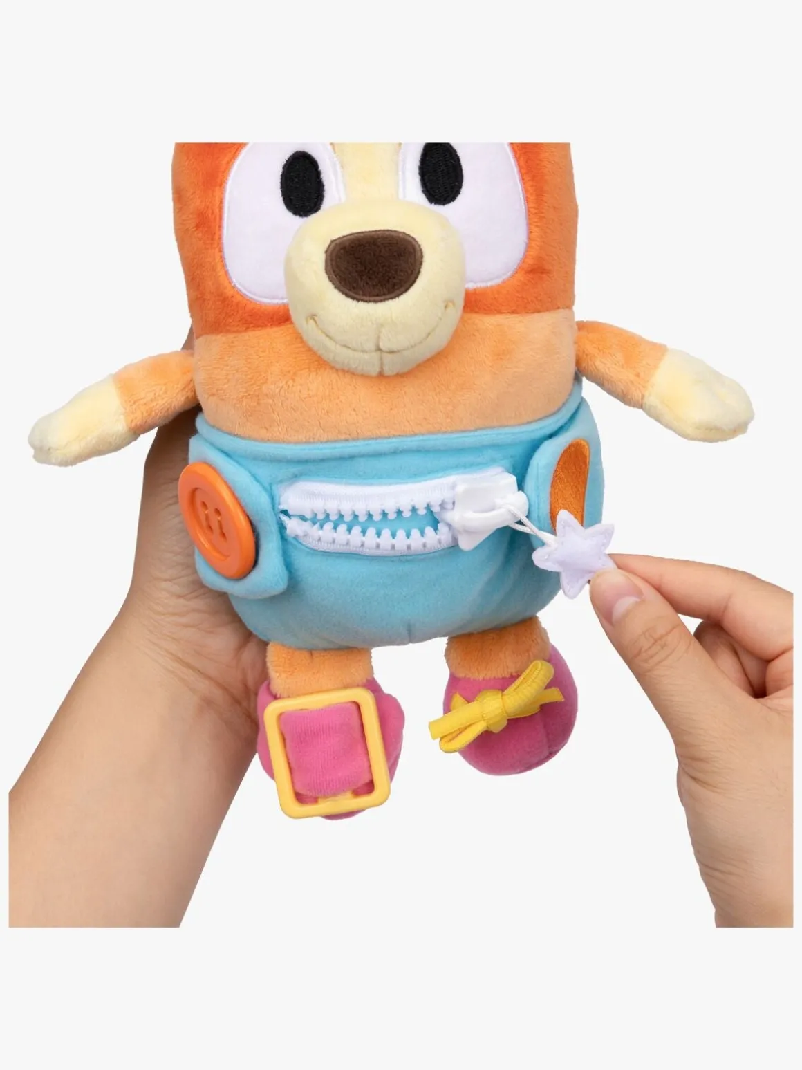 – Her kan man øve sig i at knappe, spænde og lyne tøjet op.