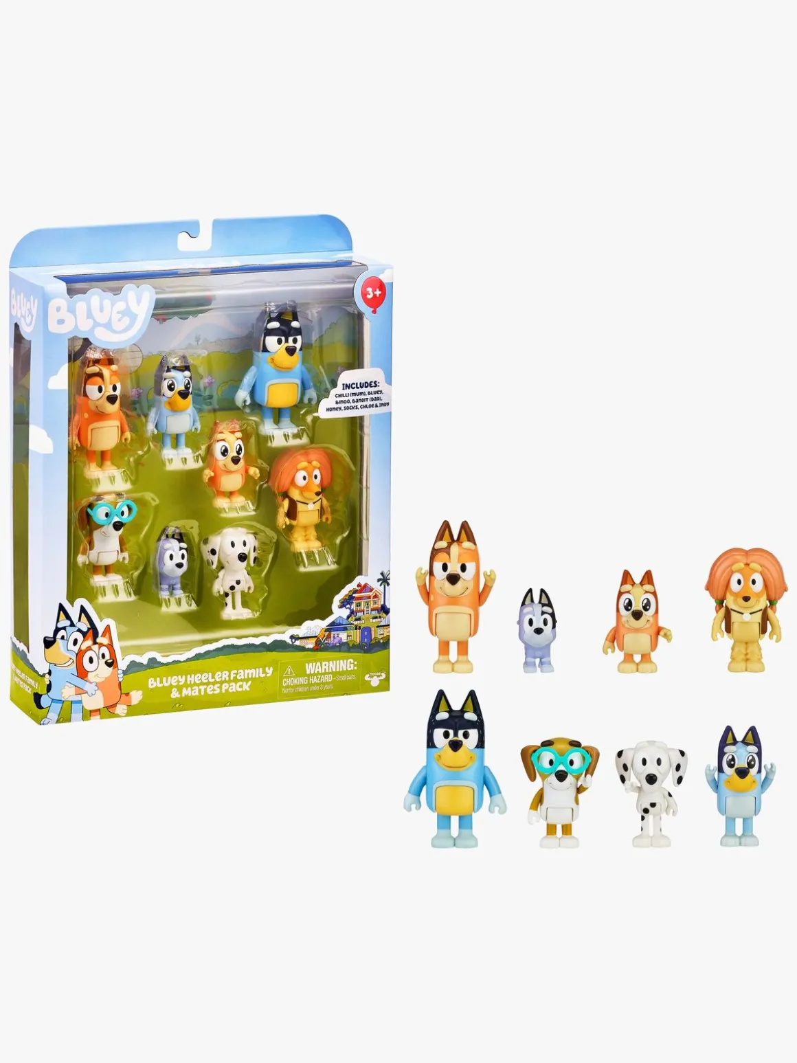 – Indeholder: Bluey, Bingo, far Bandit, mor Chili og vennerne Honey, Socks, Chloe og Indy.