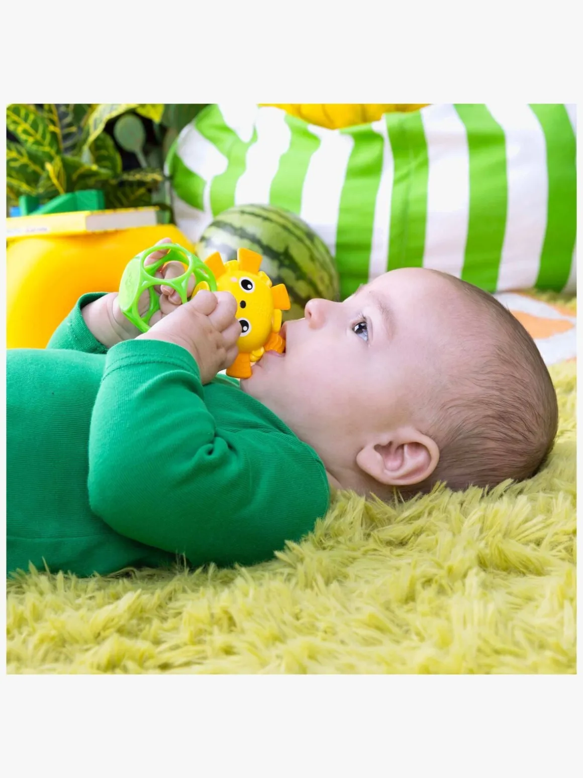 – Ranglen er nem at holde fast i med små hænder og laver bløde raslelyde, når dit barn ryster den.