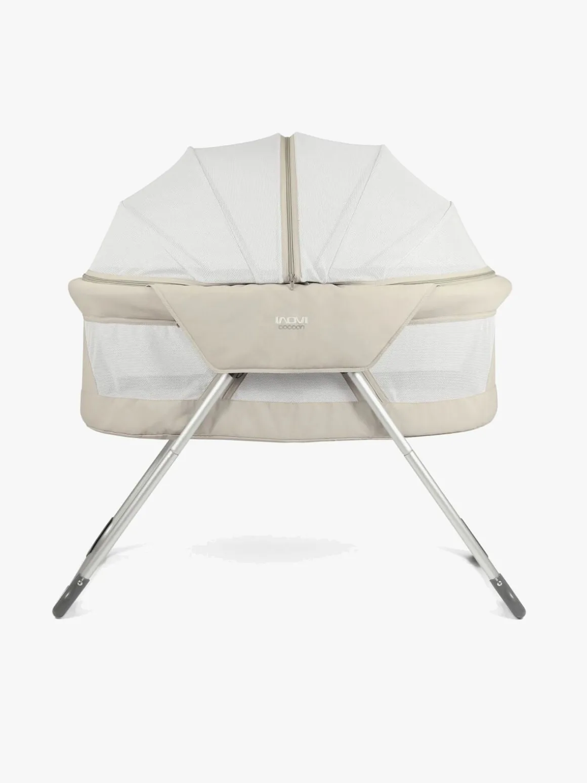 Inovi Cocoons tag og sider er produceret i et blødt og let naturmateriale, som sikrer en god luftcirkulation til barnet, og nettet sikrer mod insekter så sengen også kan bruges udenfor, f.eks. om sommeren.