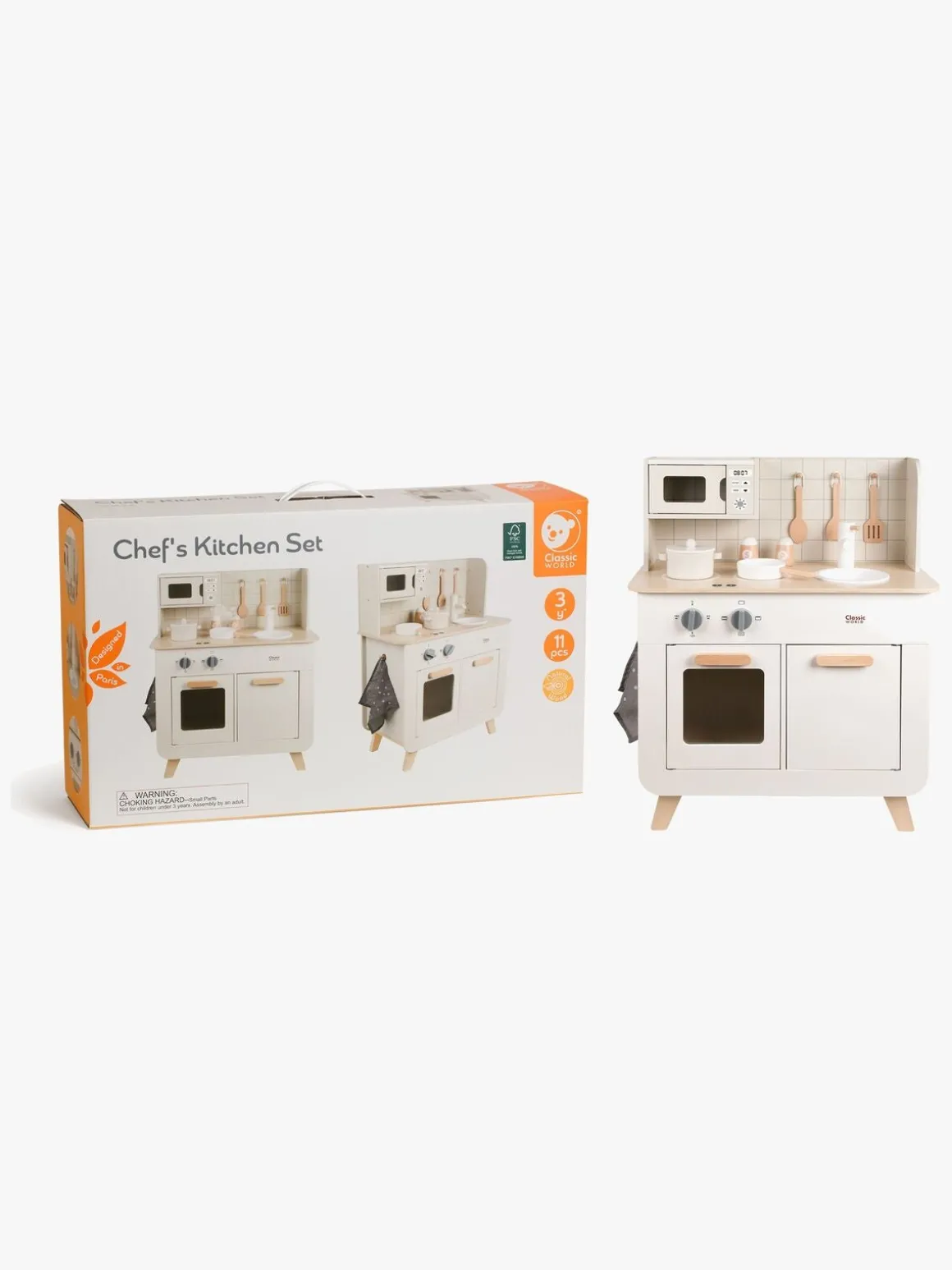 – Indeholder: 1 legekøkken, 1 dørslag, 3 paletknive, 1 salatskål, 1 peberkværn, 1 kasserolle, 1 stegepande.