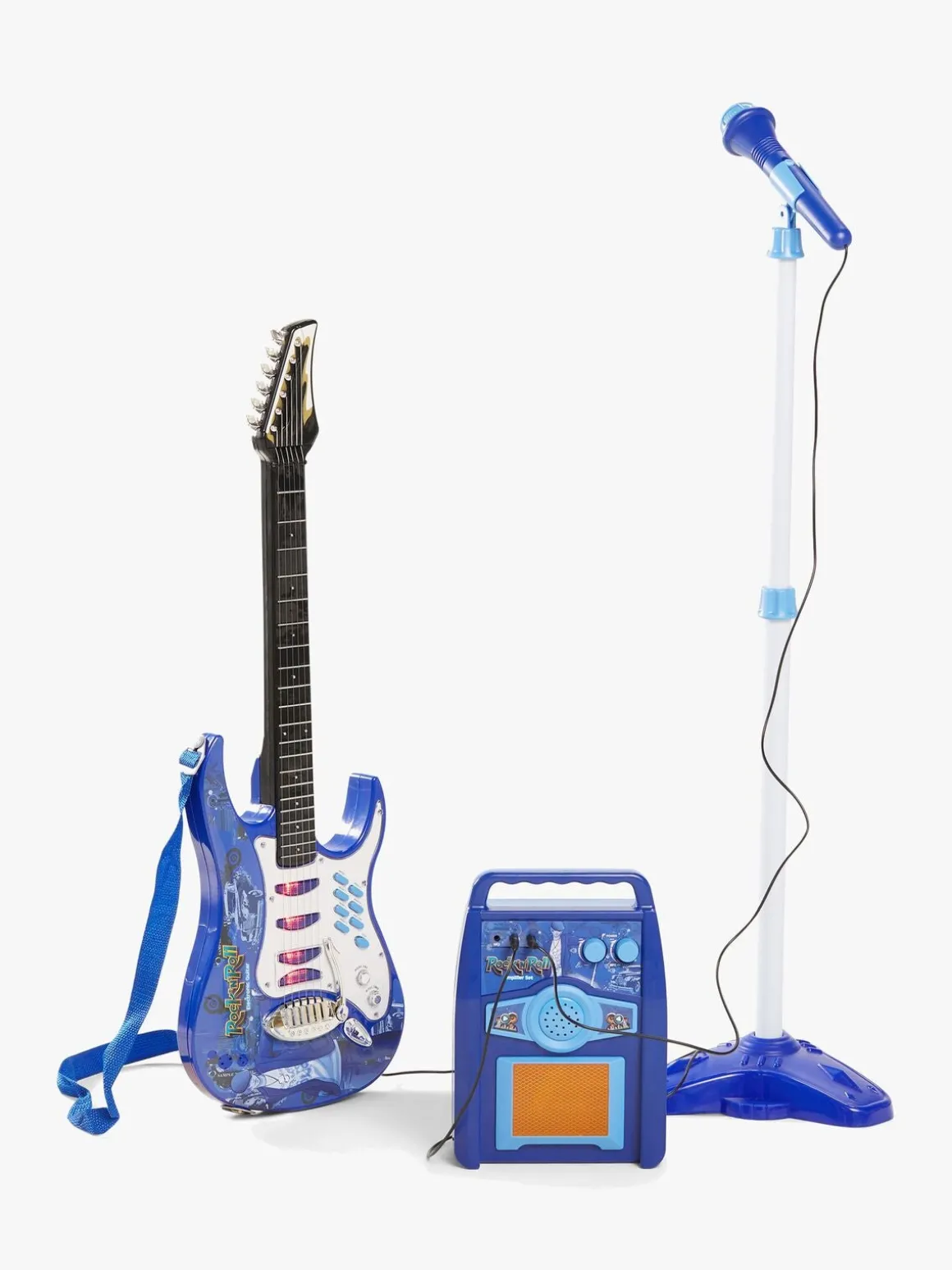 – Indeholder: 1 legetøjsguitar, 1 mikrofon, 1 mikrofonstativ, 1 højttaler.