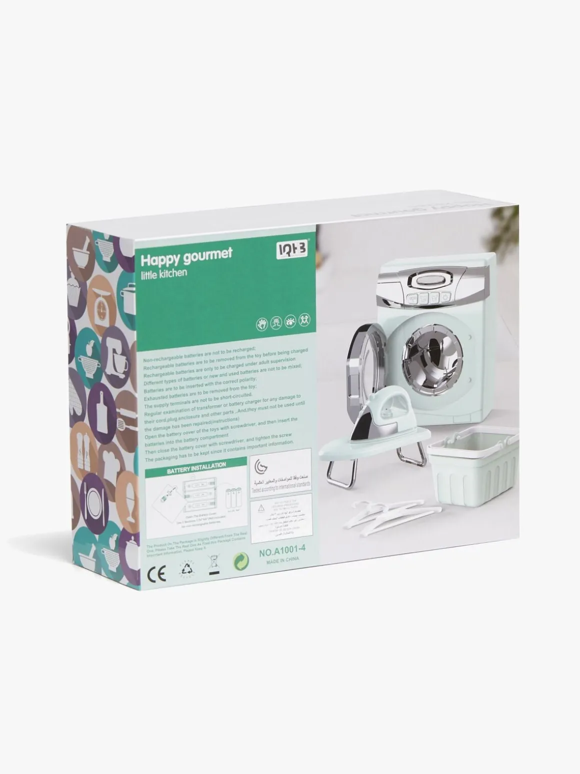 – Indeholder: 1 vaskemaskine, 1 strygejern, 1 strygebræt, 1 kurv, 2 bøjler.