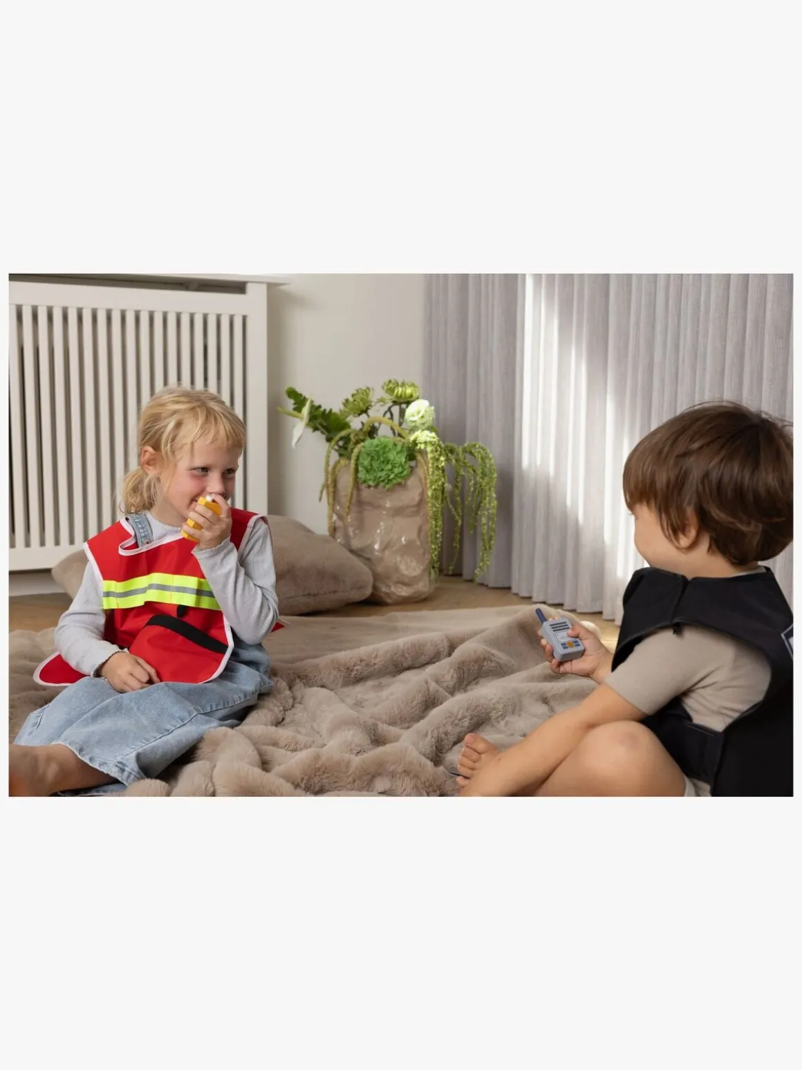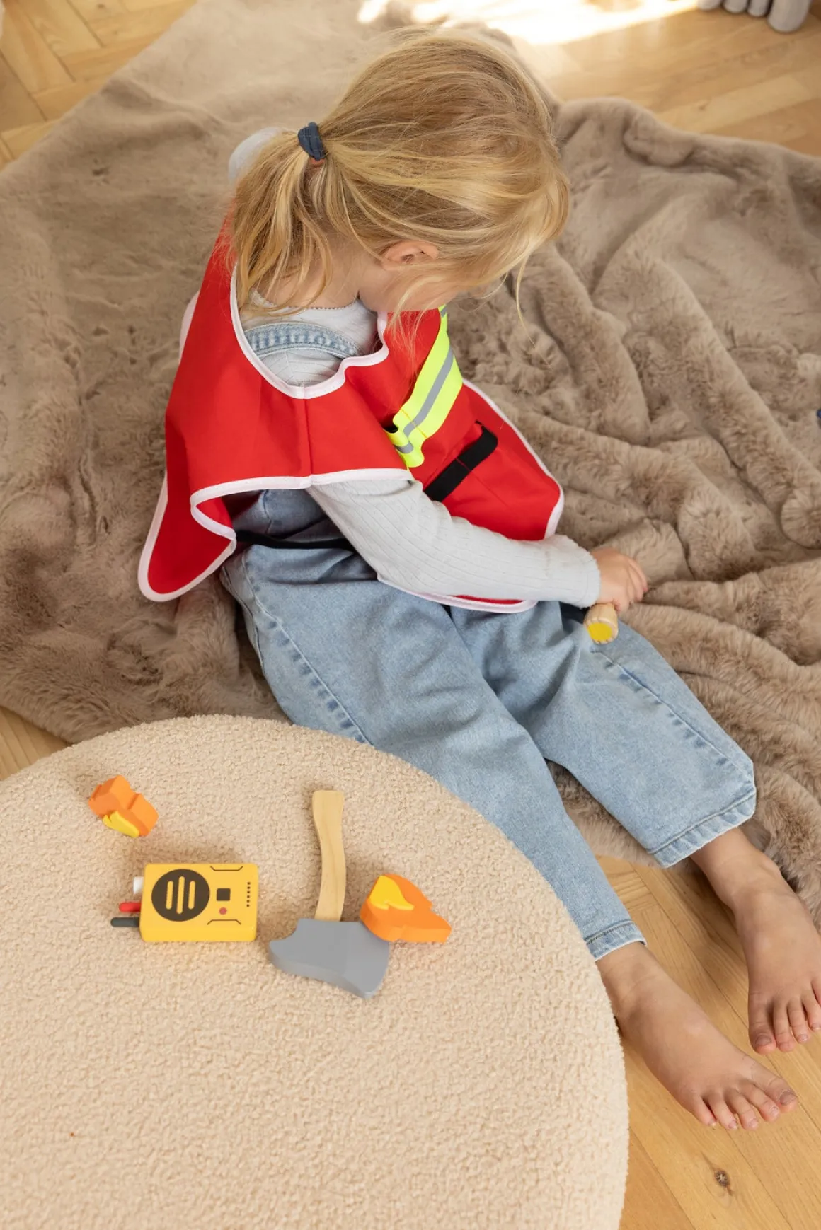 – Indeholder: 1 vest, 1 brandslukker, 1 økse, 1 koben, 1 lommelygte, 1 walkie talkie, 2 flammer, 2 skilte.