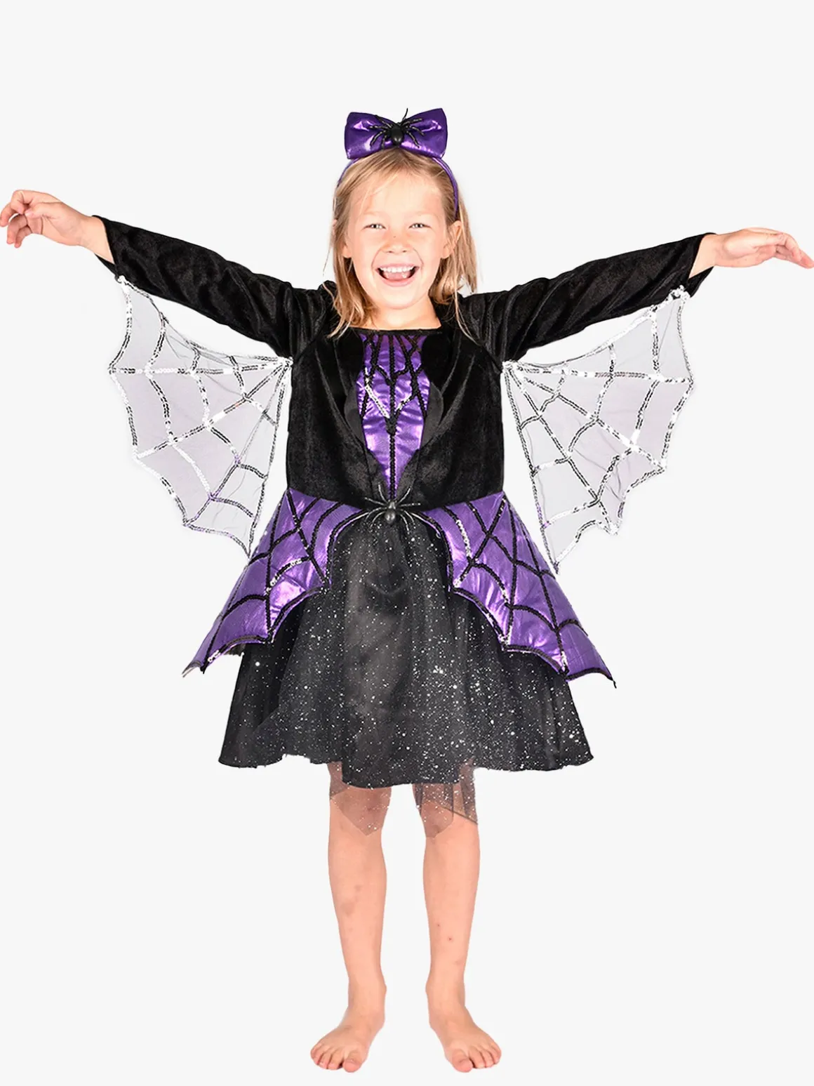 – Indeholder: 1 edderkoppe-kjole, 1 diadem.