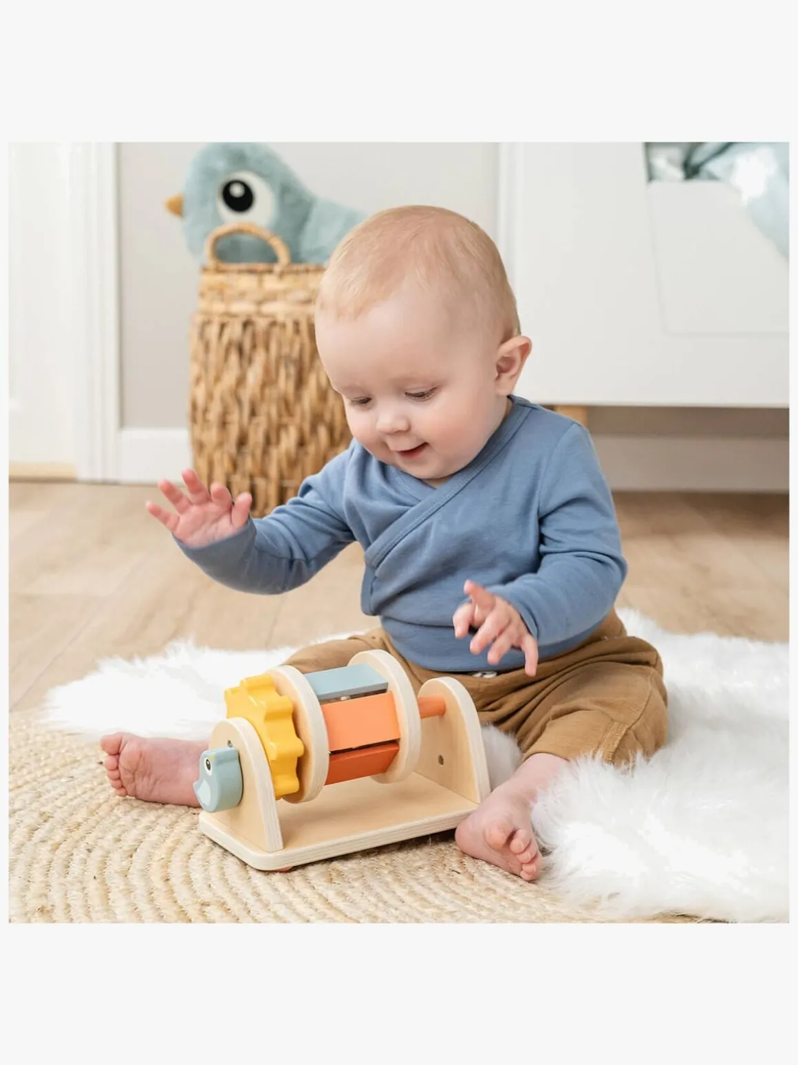 – Sjove farver og et spejl til visuel stimulering.