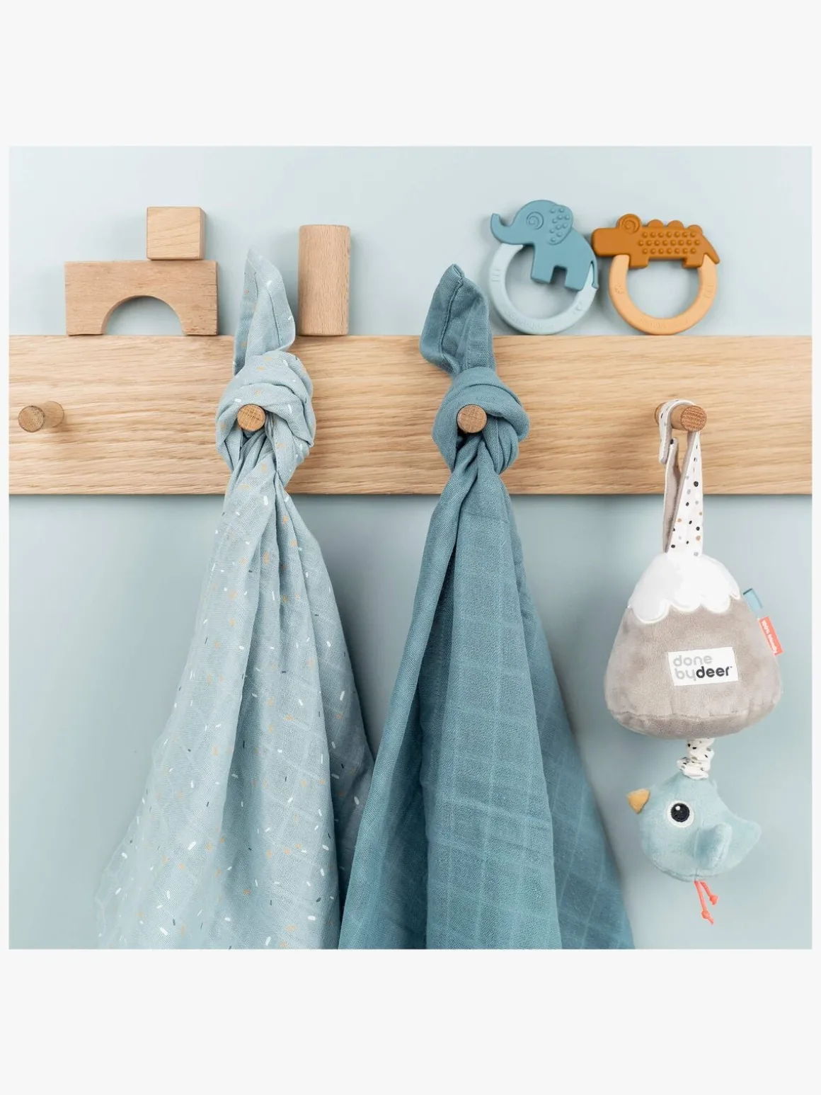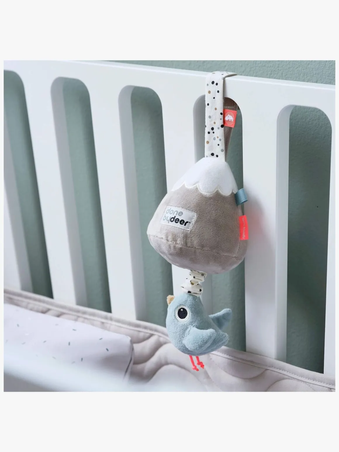 – Perfekt til at hænge over tremmesengen eller barnevognen.