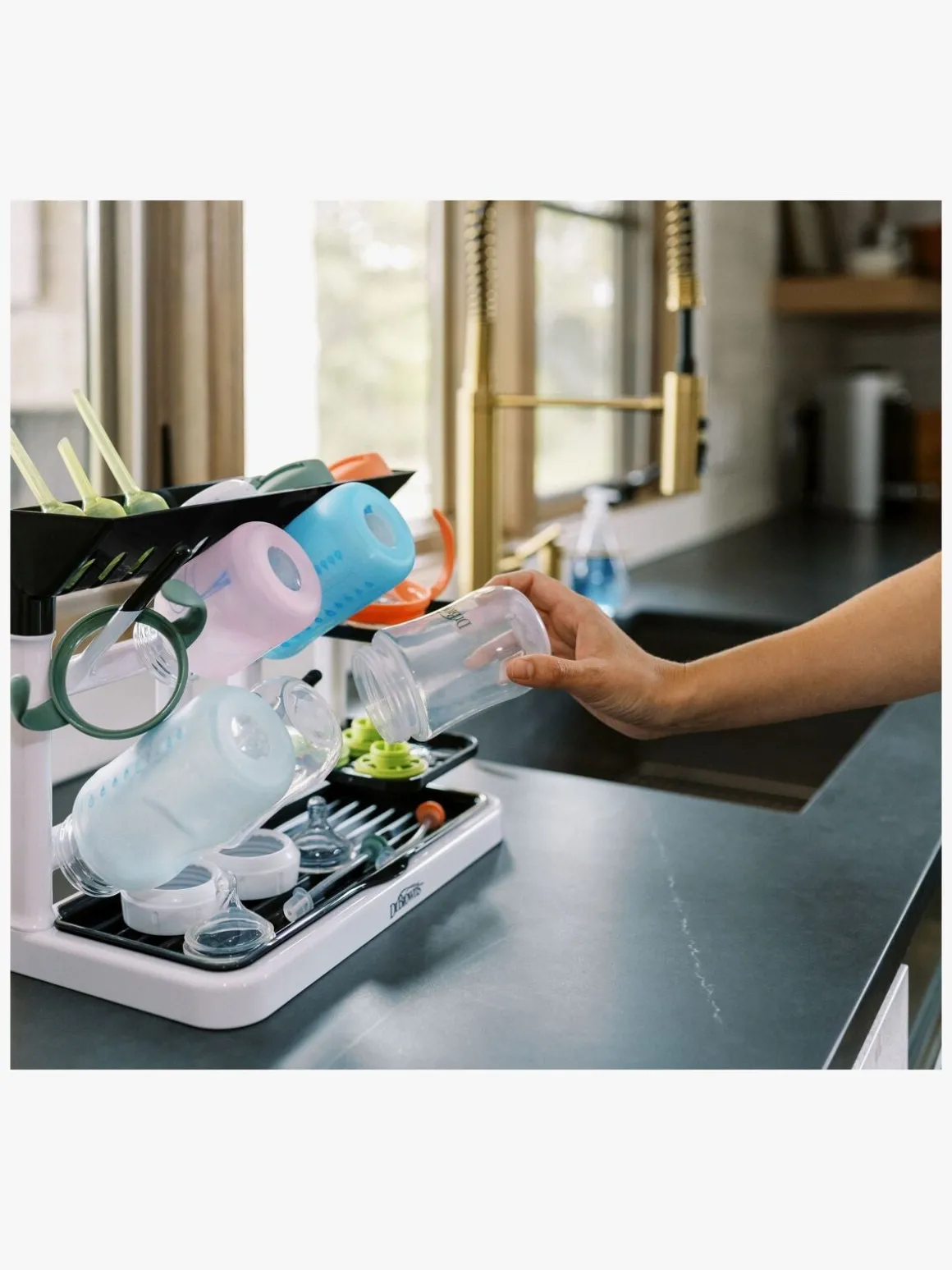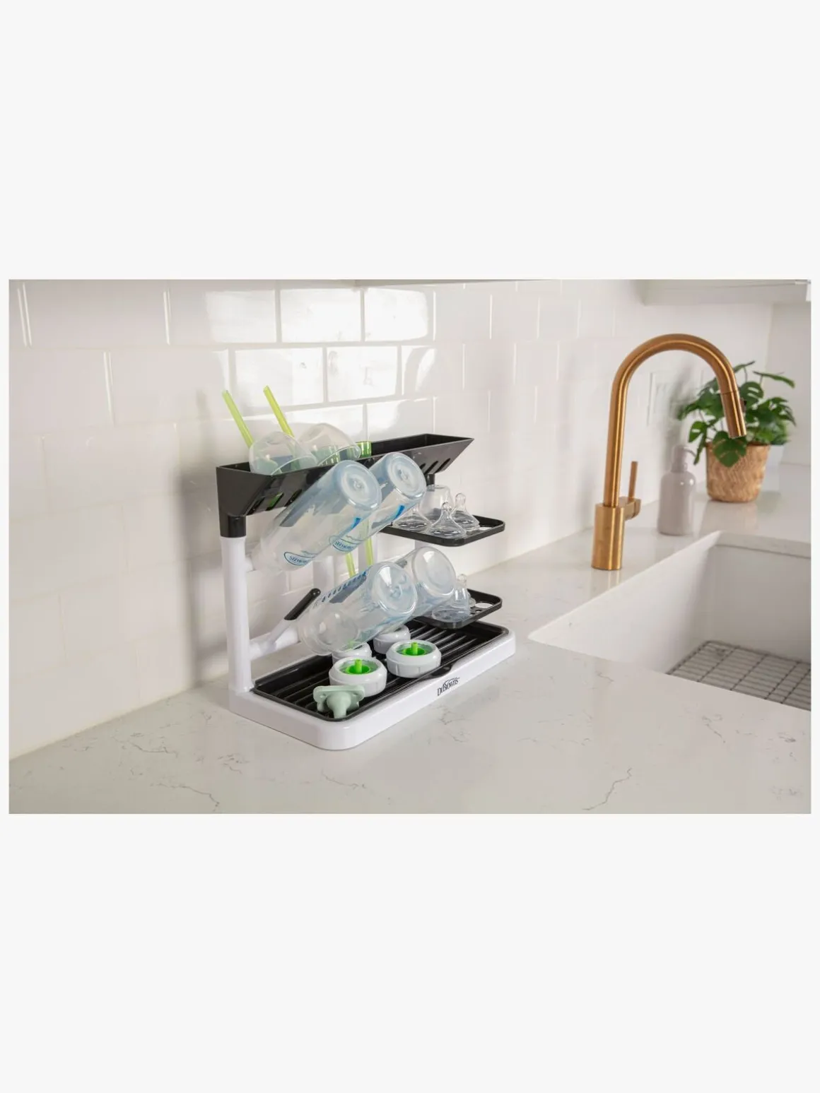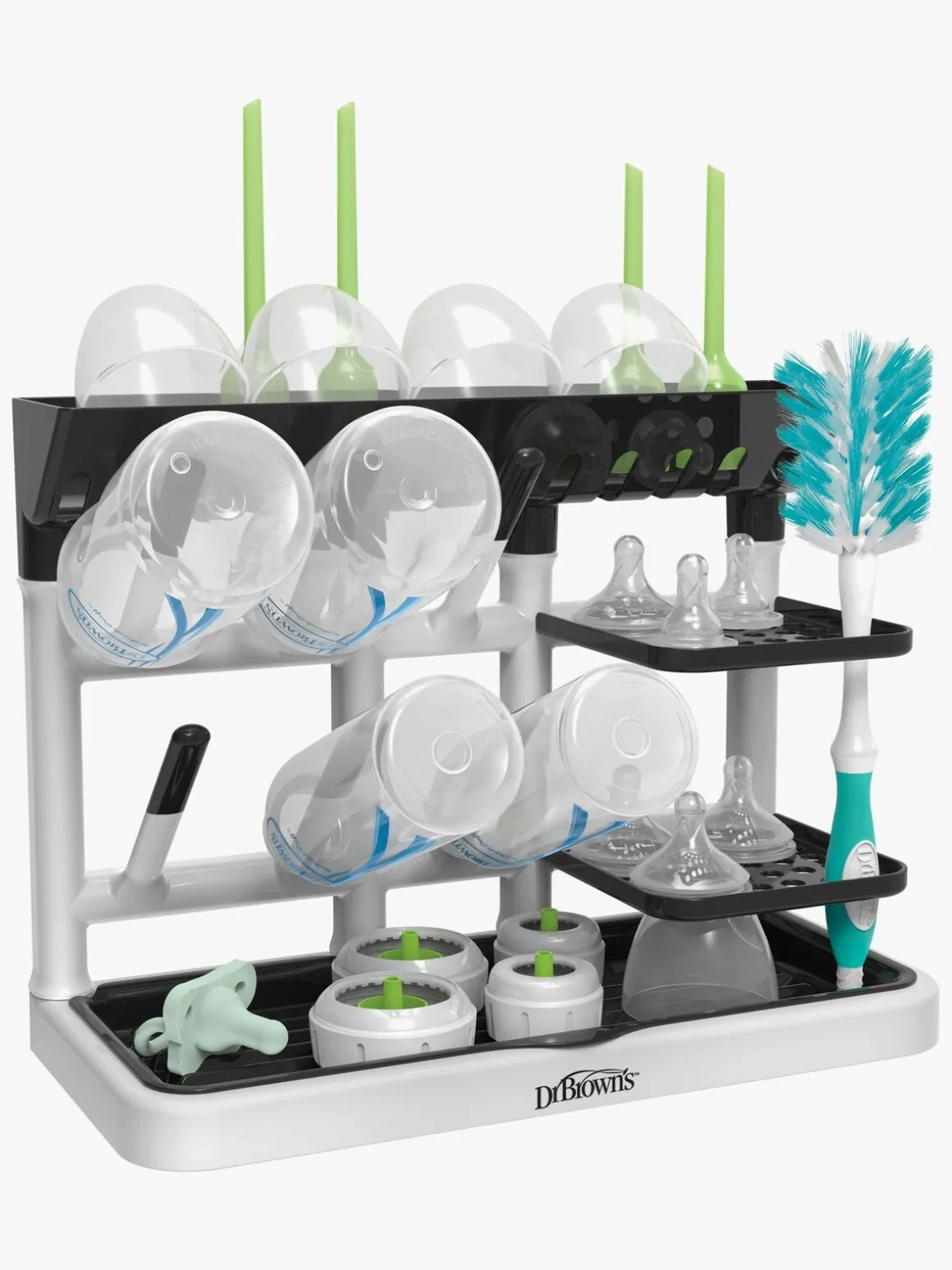 – Et stativ til tørring og opbevaring af barnets flasker og kopper.