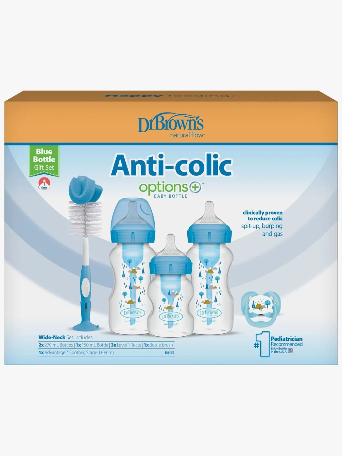 – Indeholder: 2 sutteflasker på 270 ml, 1 sutteflaske på 150 ml, 1 flaskebørste, 1 sut.
