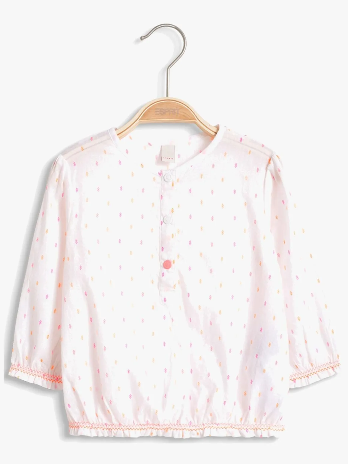 Den har desuden en sød rynkeeffekt på ærmerne og den nederste kant.