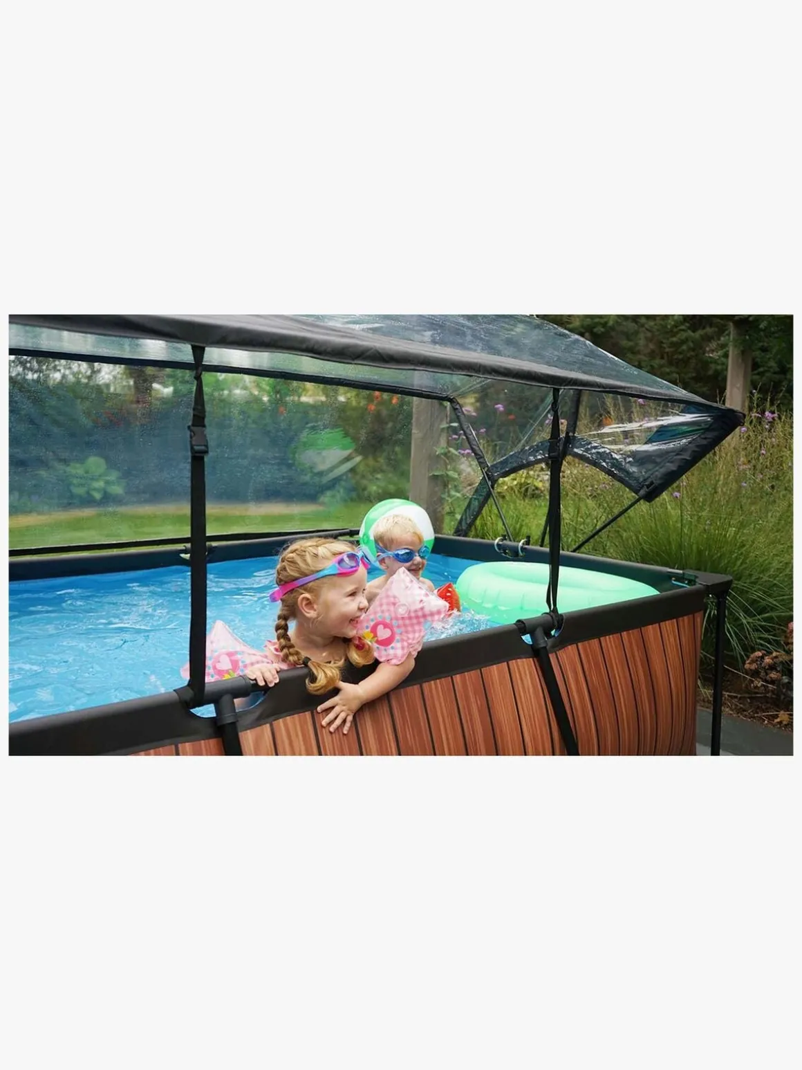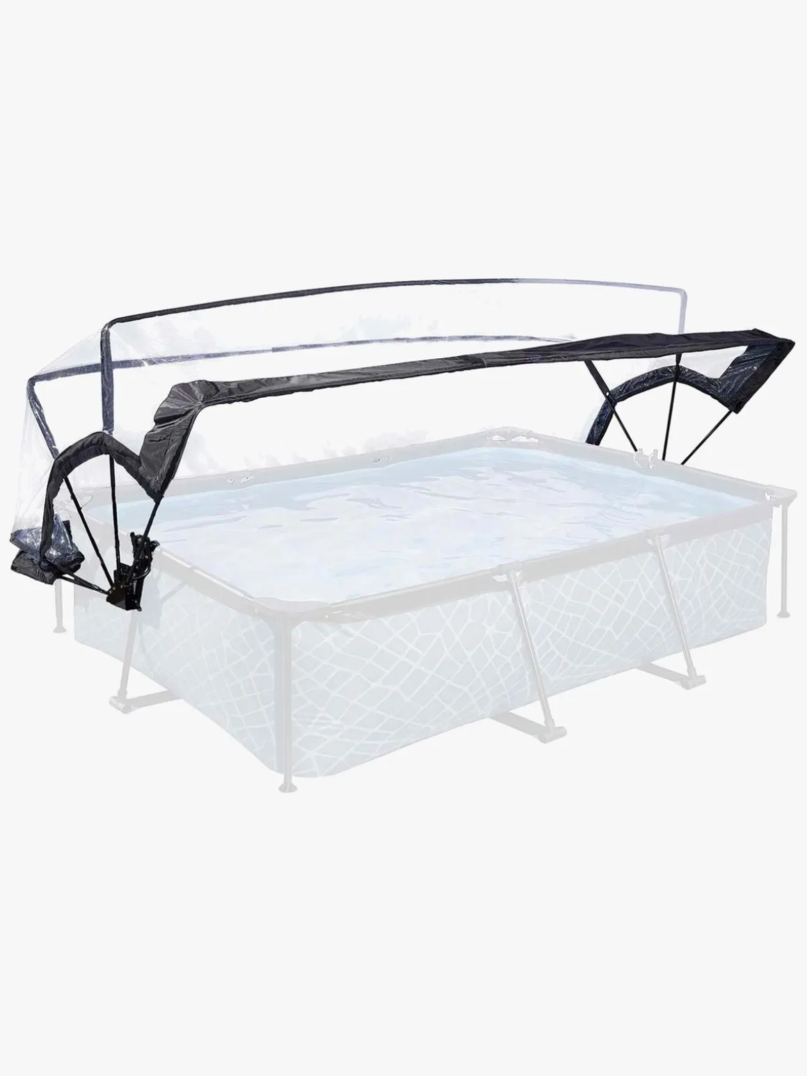 Taget monteres enkelt på rammen af poolen, og er let at åbne og lukke. Man kan også lade det være halvt åbent, så man både skærmer for evt. vind, men samtidigt kan komme i og ud af poolen.