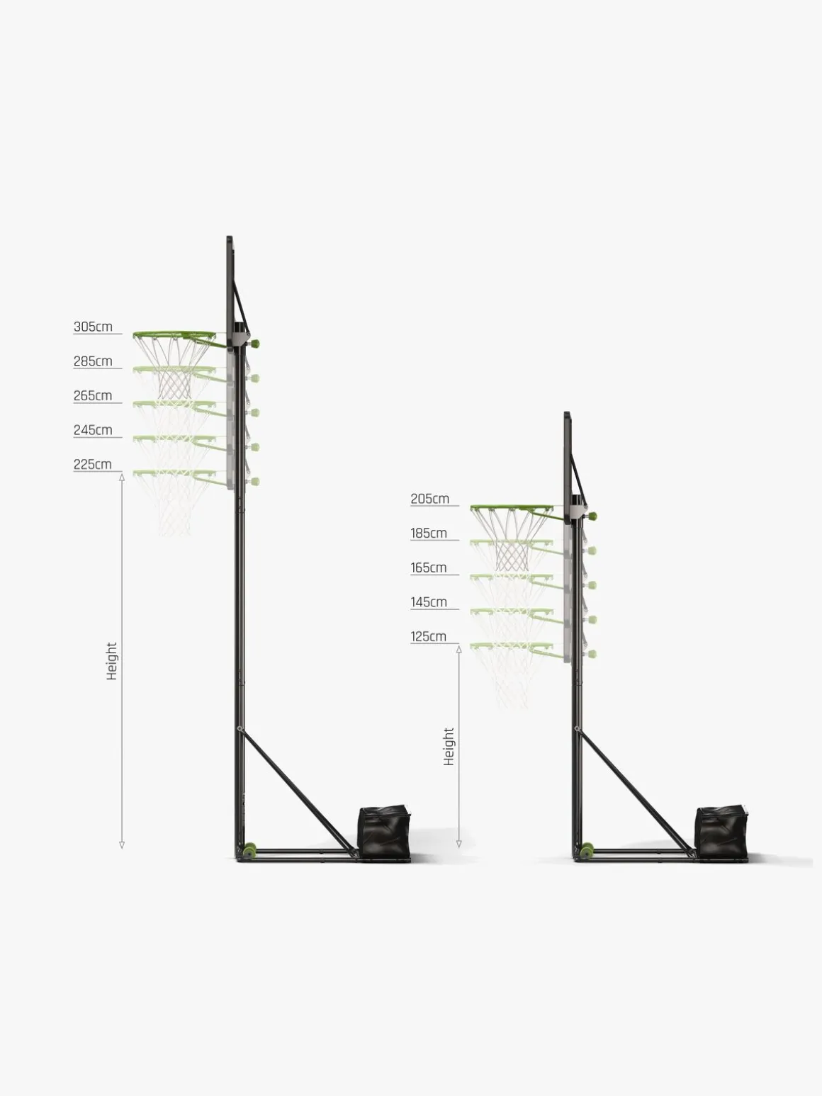 – 5 seniorpositioner (225 – 245 – 265 – 285 – 305 cm).