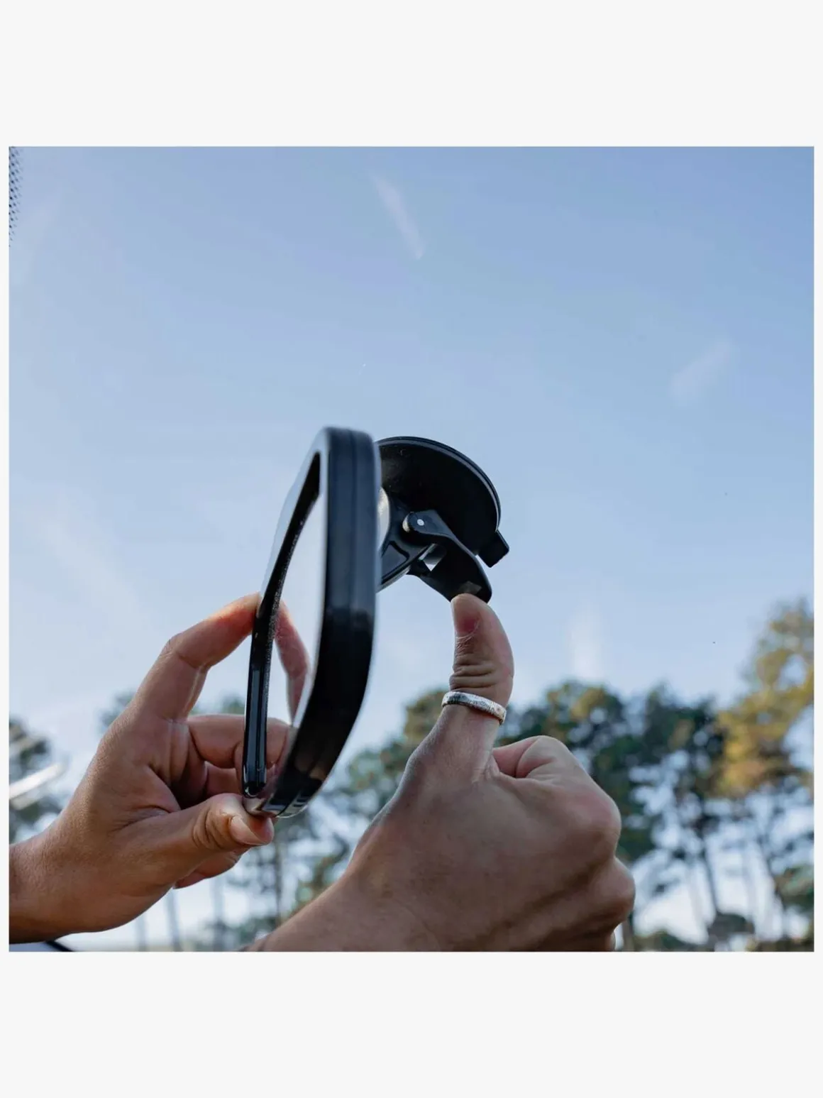 – Fastgøres under dit almindelige bakspejl.