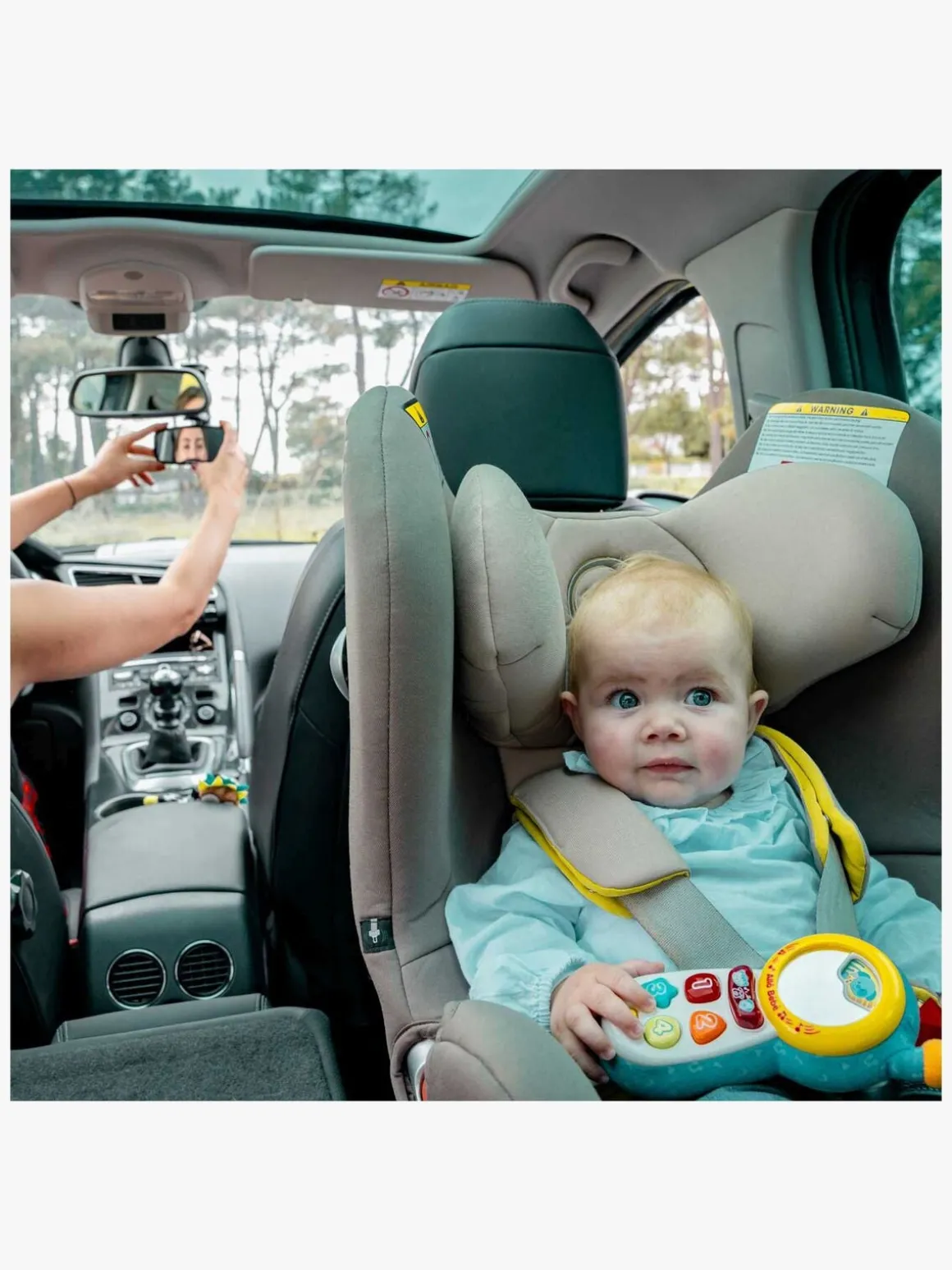 – Ekstra stort bakspejl, der monteres på bilens bagsæde.