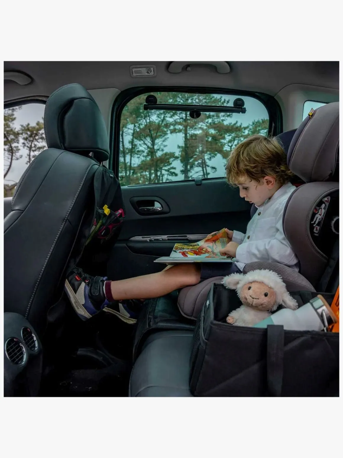 – Fastgøres til forsædets nakkestøtte og ryglæn med stropperne.
