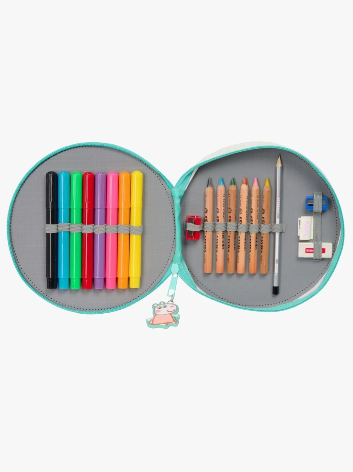 – Indeholder: 1 penalhus, 6 farveblyanter, 8 tusser, 1 blyant, 1 viskelæder, 2 blyantspidsere.