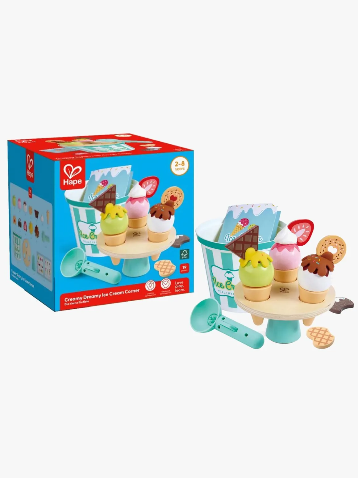 – Indeholder: 1 isspand, 1 isbod, 1 ismenu, 1 isske, 1 issvaffel, 3 issmage, 8 toppings.