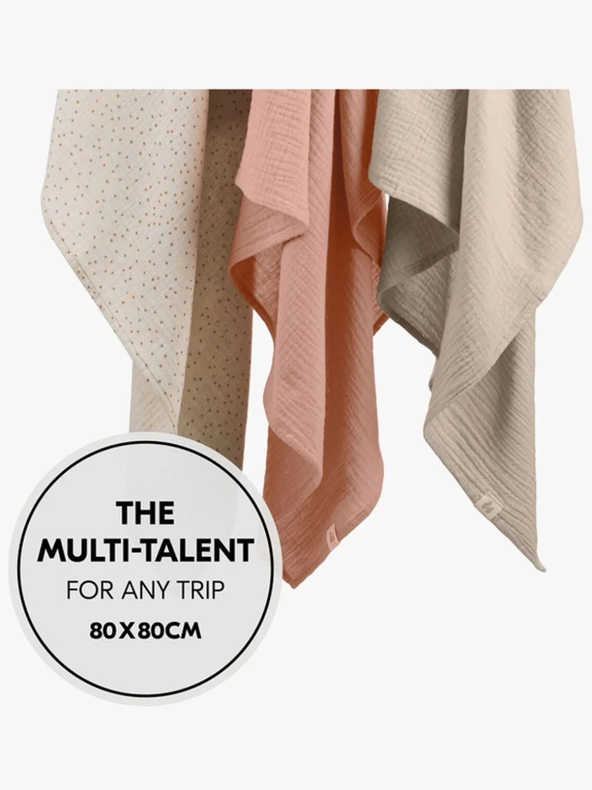 – Brug stofbleerne, når du ammer, giver barnet flaske og som gylpeklud eller pusleunderlag, når du er på farten. De kan også bruges som afskærmning, hagesmæk eller nusseklud.
