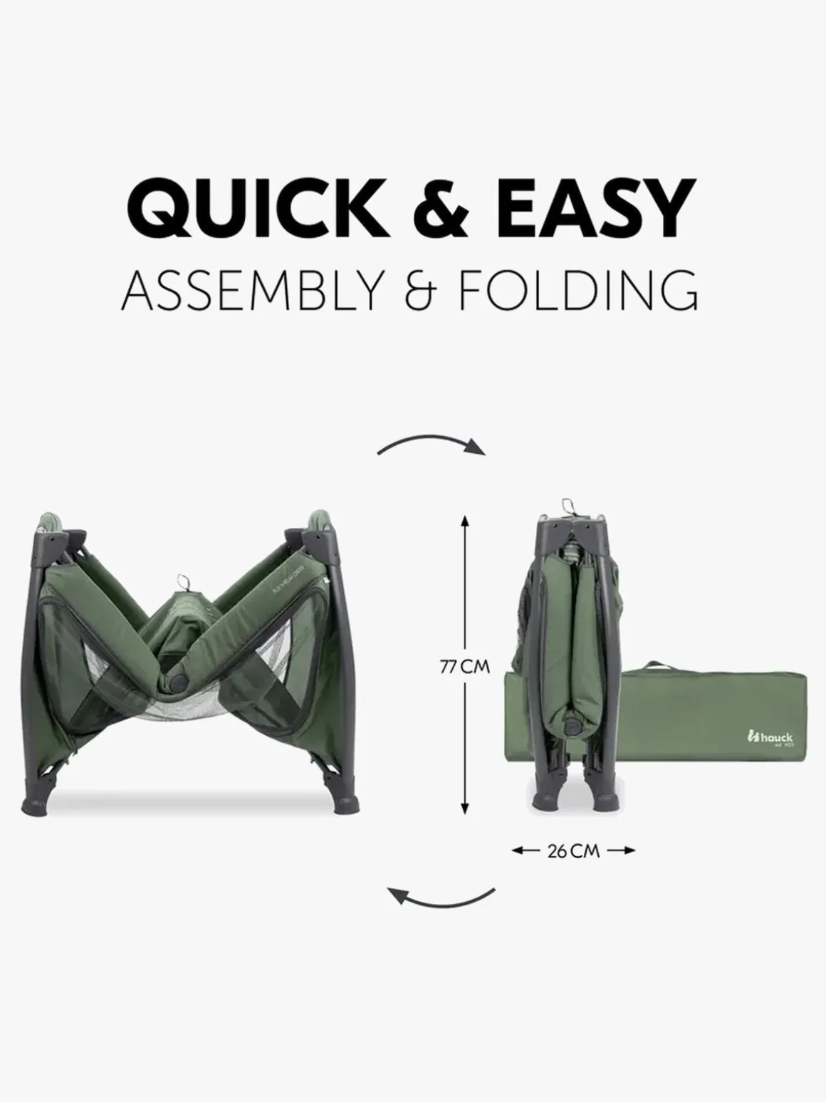– Mål sammenfoldet: H 22.5 x L 77 x 26 cm.