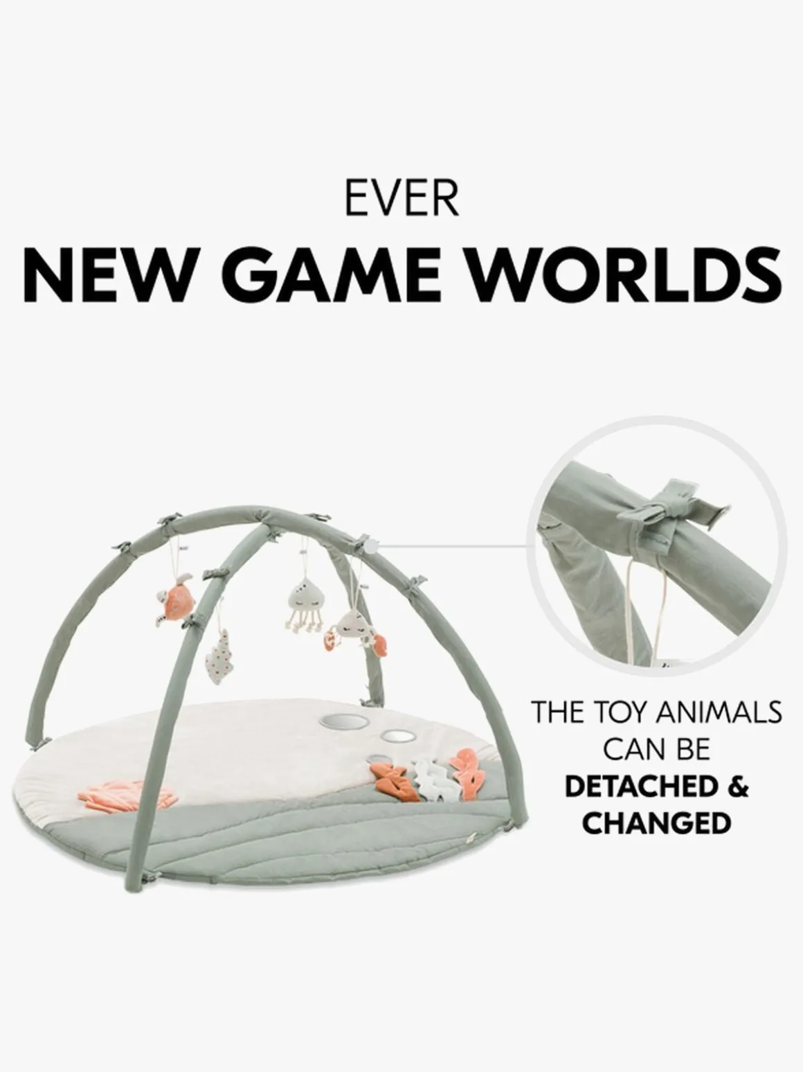 – Bøjlerne kan tages af, så aktivitetscentret kan fungere som et legetæppe.