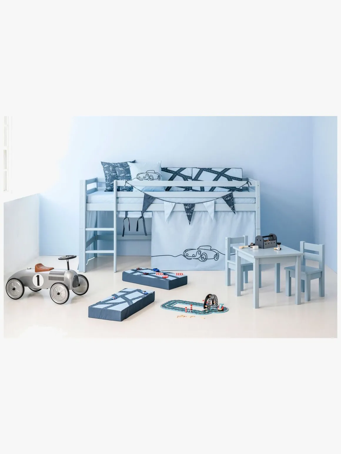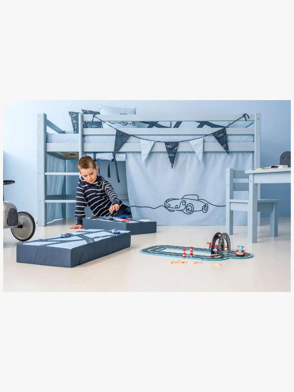 Komplettér gerne med Hoppekids sengegardin og skab en hyggelig hule under sengen!
