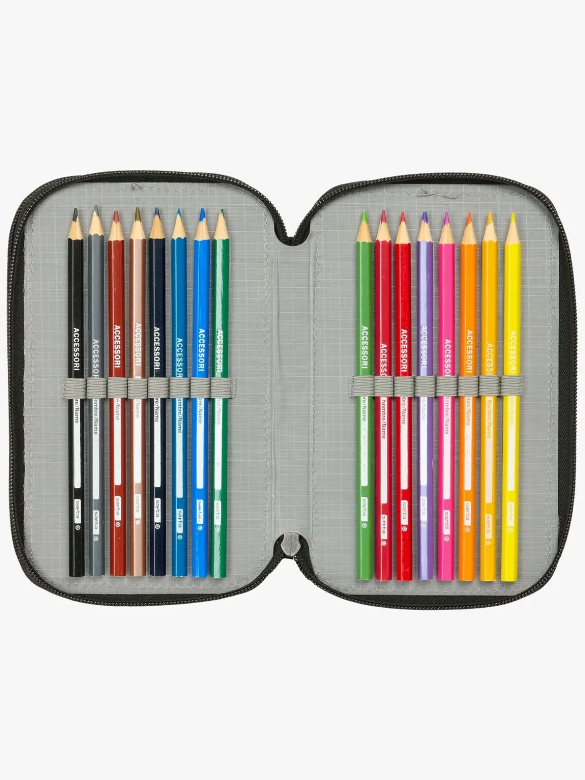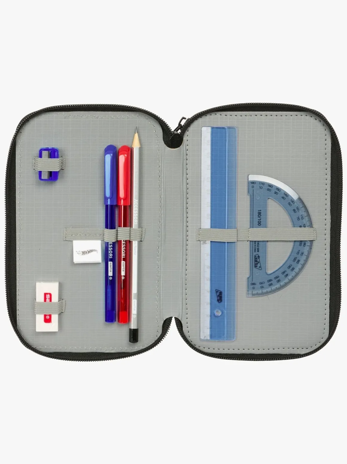 – Indeholder: 16 farveblyanter, 14 tusser, 2 kuglepenne, 2 linealer, 1 viskelæder, 1 blyant, 1 blyantspidser, 1 penalhus.