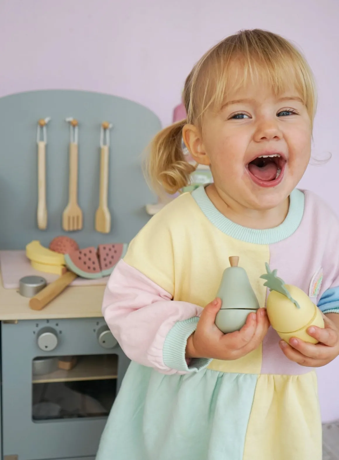 – Indeholder: 1 boks, 5 frugter, 1 legetøjskniv.
