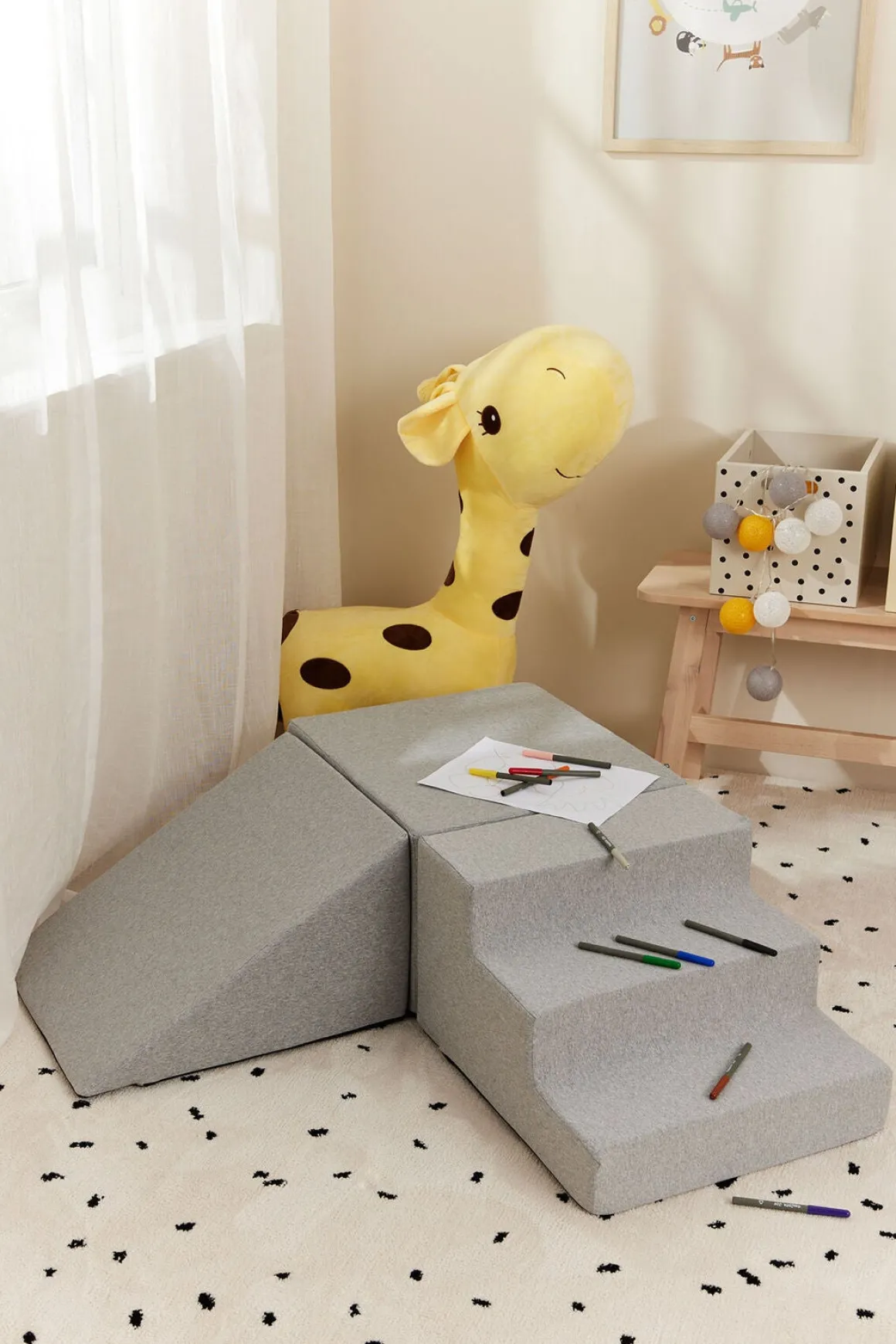 – Skumfyld og bløde kanter, så du trygt kan lade dit barn lege.