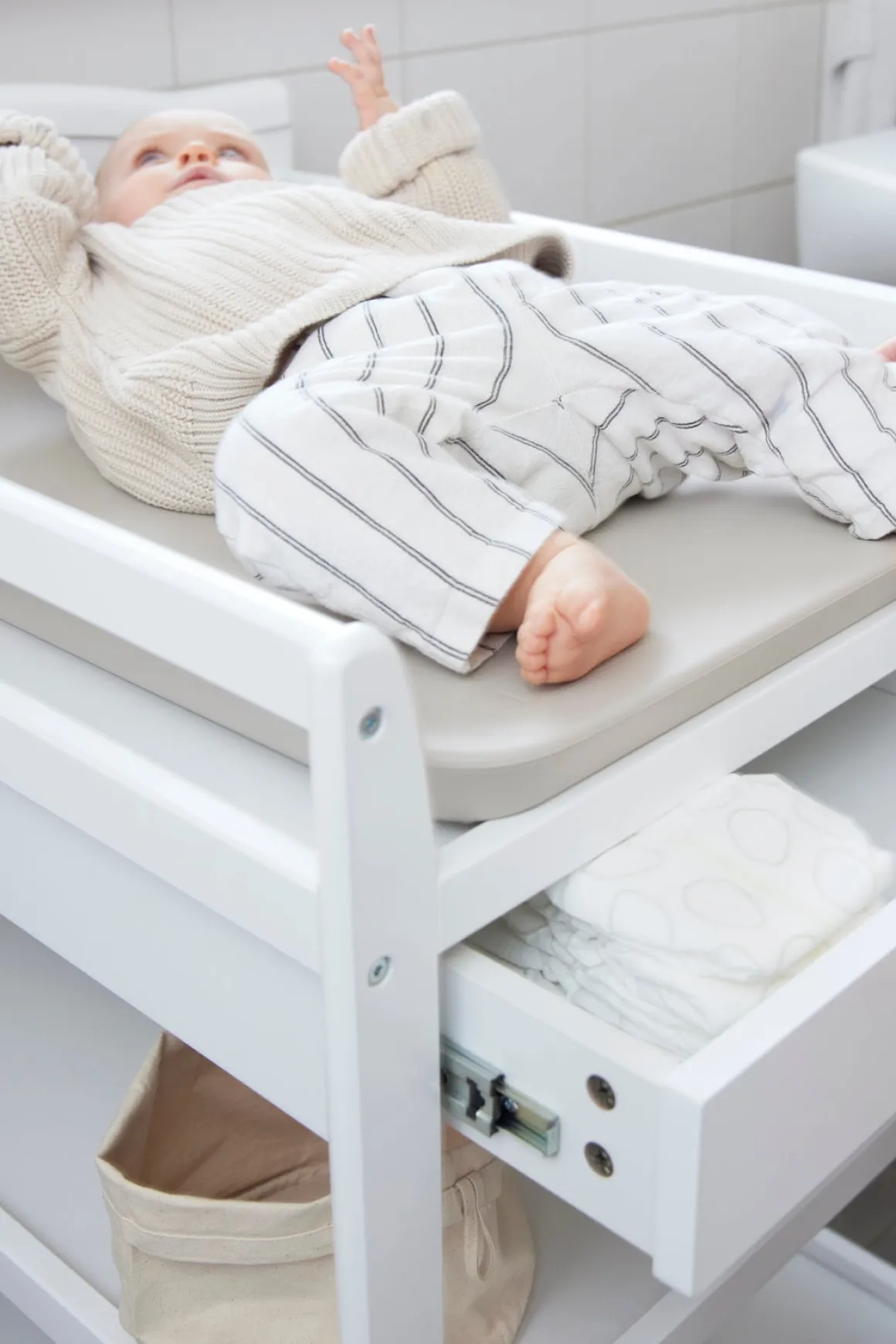Glem ikke at købe et blødt puslepude til at lægge ovenpå skiftebordet.