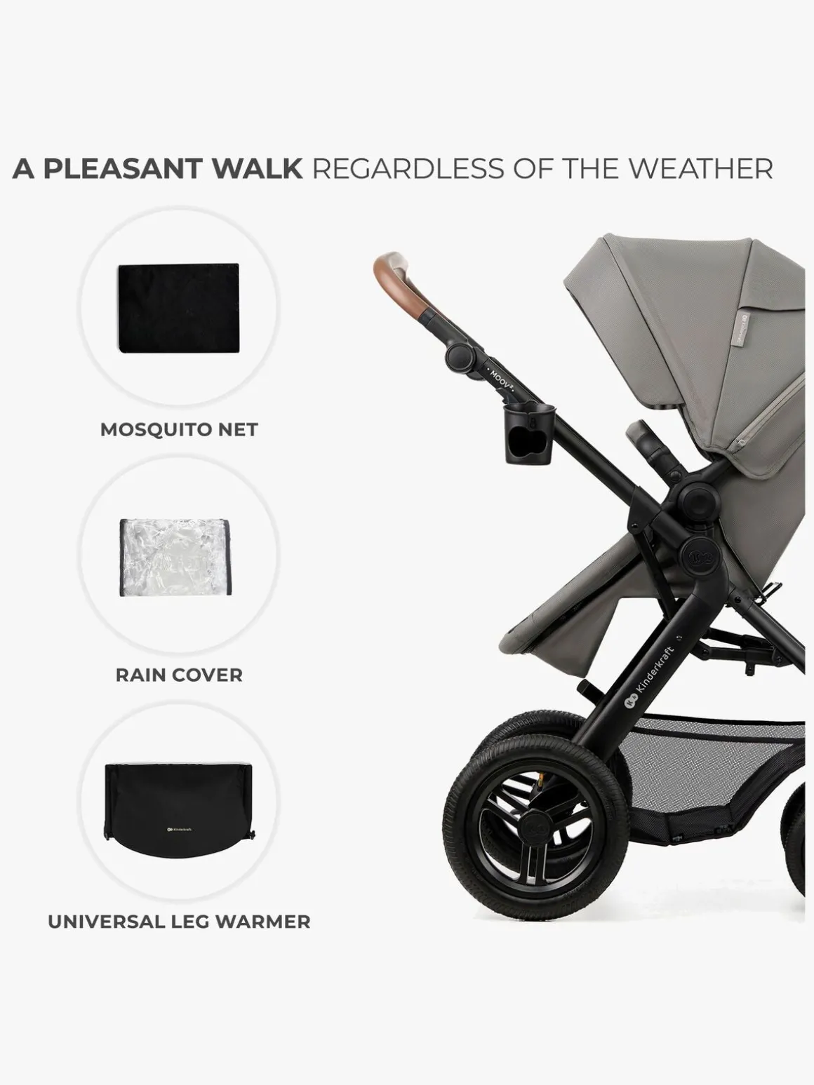 – Inkluderer: regnslag, myggenet, kørepose, pusletaske, adapter, kopholder.