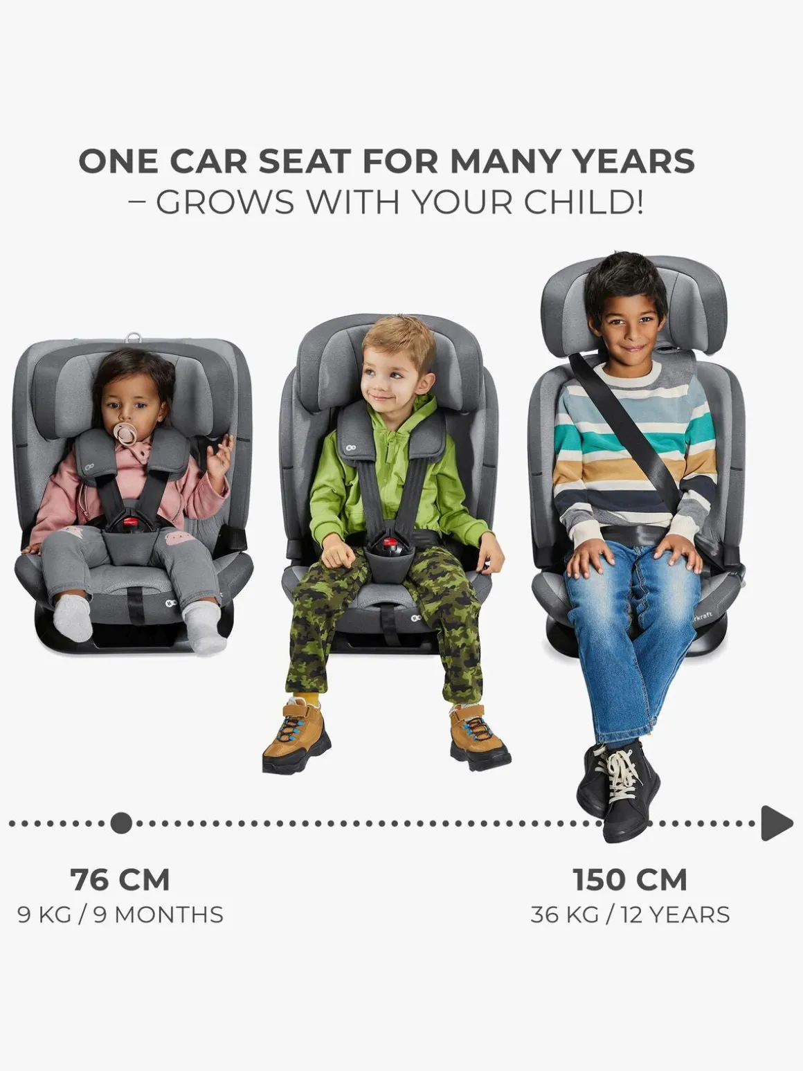 – Fremadvendt autostol, der vokser med dit barn fra 15 måneder og op til 12 år.