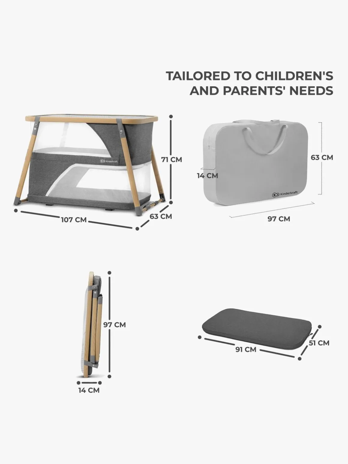 | Øvrige mål | Udfoldet: 107 x 63 x 71 cm Sammenfoldet: 97 x 64 x 14 cm |