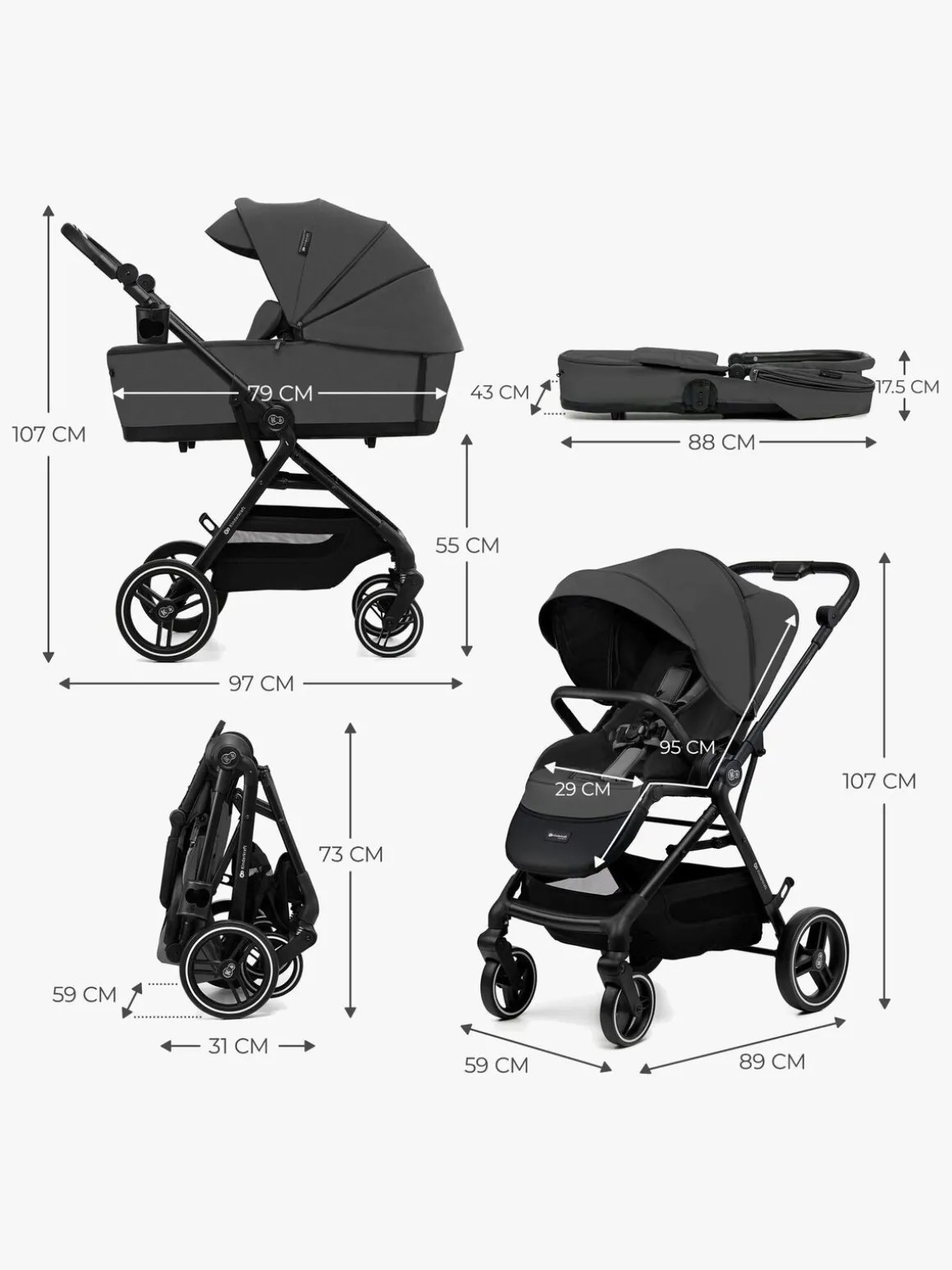 – Inkluderer: regnslag, myggenet, kørepose, kopholder, pusletaske, autostolsadapter.