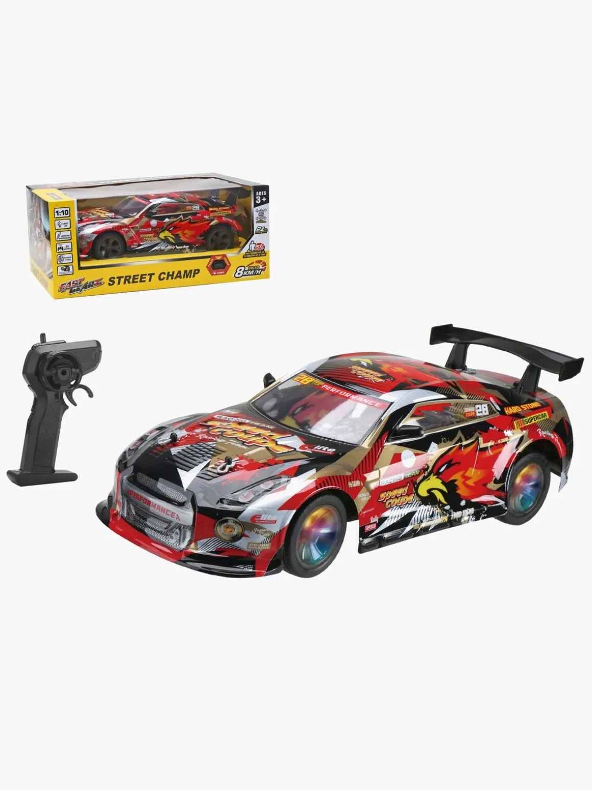 – Indeholder: 1 fjernstyret bil, 1 fjernbetjening.